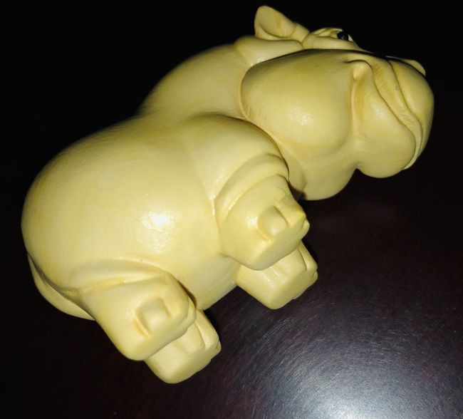 【柘植 木彫 動物】 ◆河馬カバ◆ ナチュラル/天然木製/手作り/ハンドメイド/細工彫刻/インテリア/プレゼント/縁起物