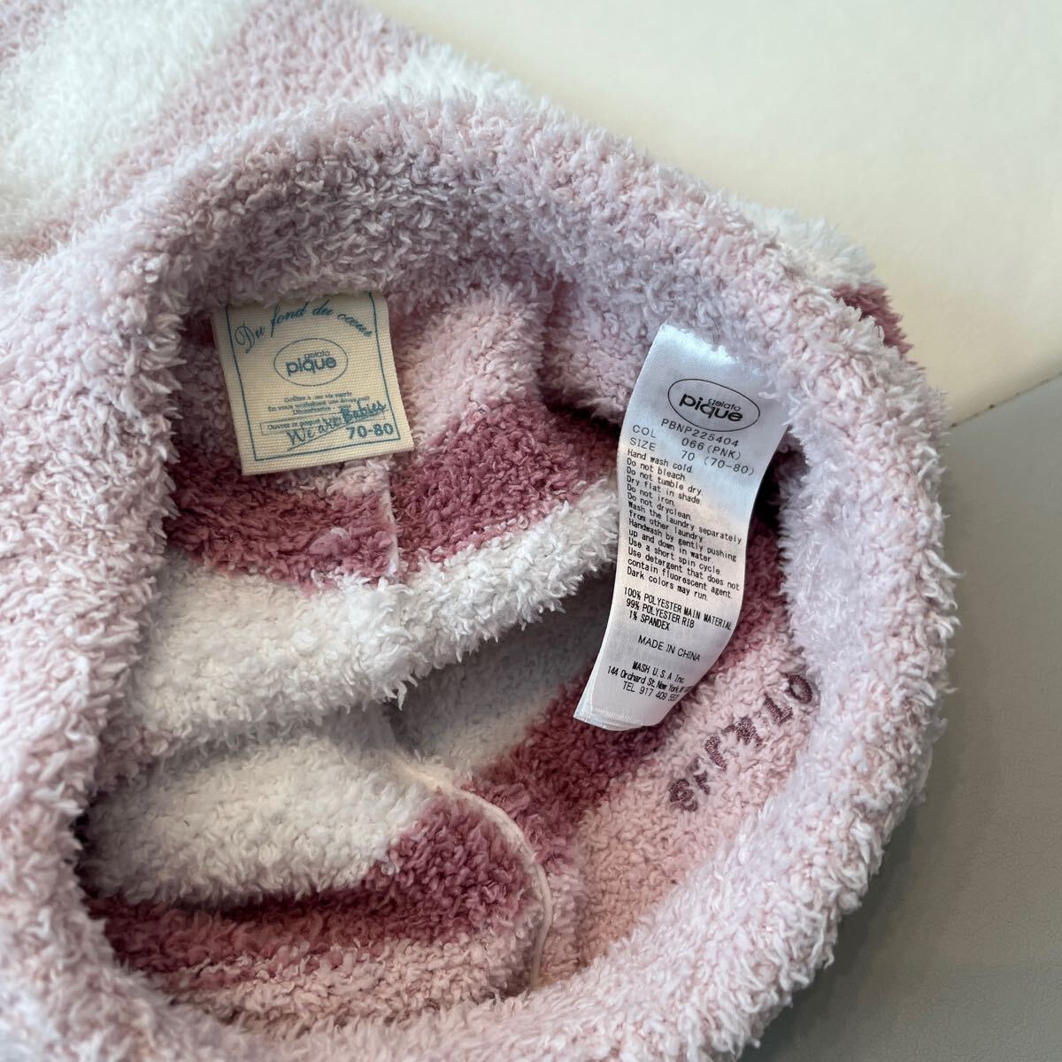 色もホワイトやピンクのボーダーになっており子供が着るとすごく可愛らしいデザインです。