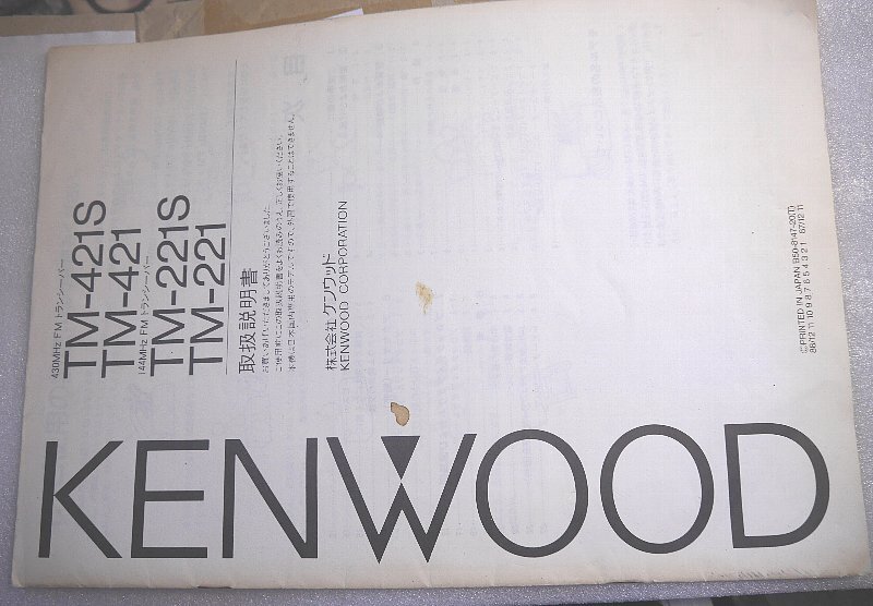 KENWOOD ★430MHz FM トランシーバー TM-421S/TM-421★144MHz TM-221S/TM-221 取扱説明書 回路図付き