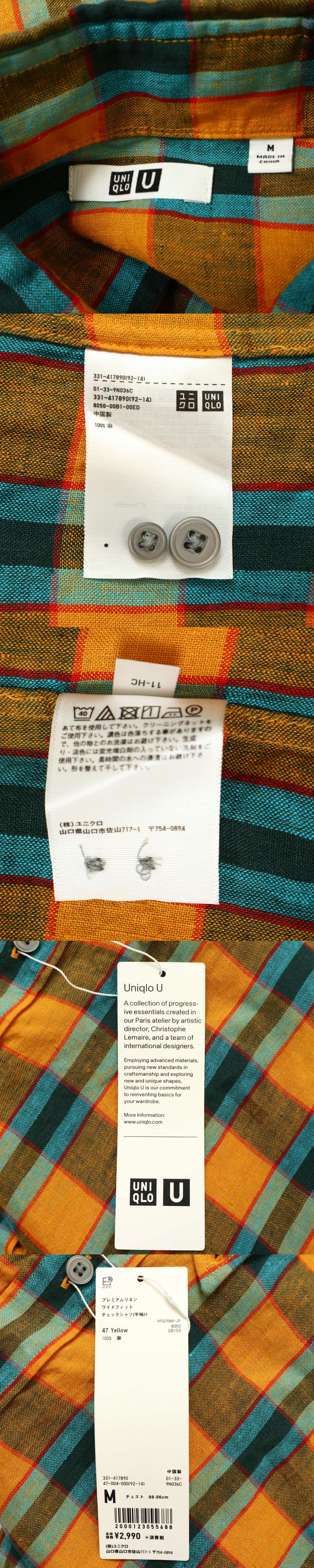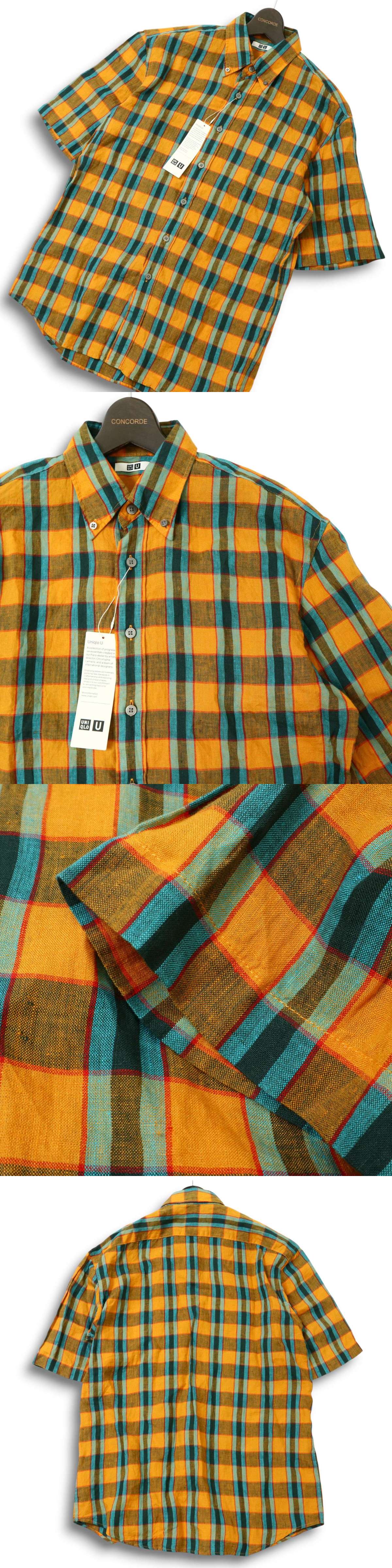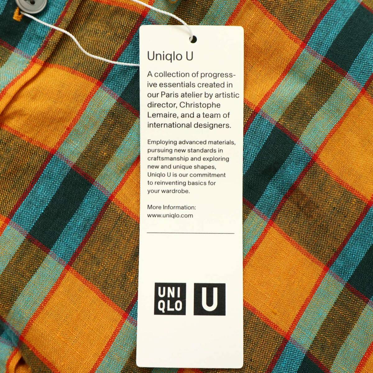 【新品 未使用】 UNIQLO U ユニクロ ユー ルメール プレミアムリネン★ ワイドフィット 半袖 チェック シャツ Sz.M メンズ