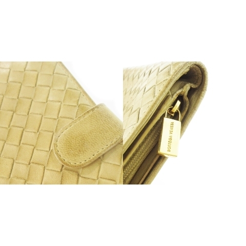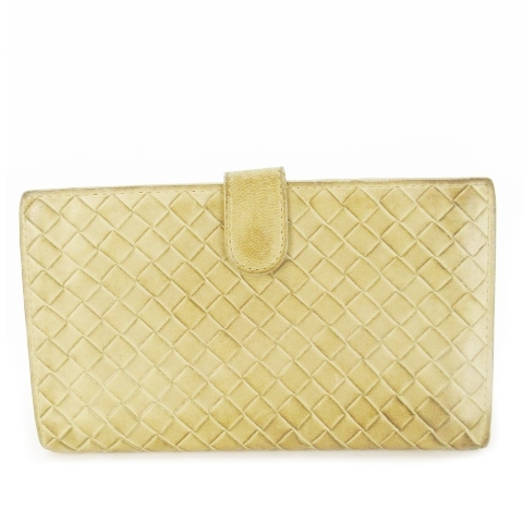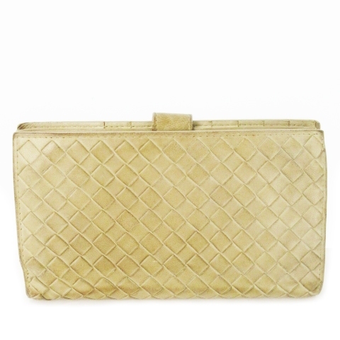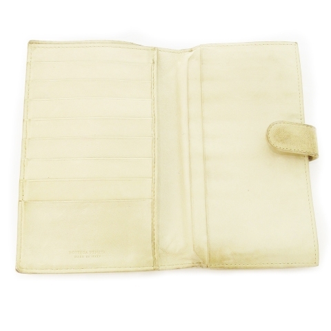 ボッテガヴェネタ BOTTEGA VENETA 長財布 ロングウォレット 二つ折り 小銭入れあり レザー 革 イントレチャート 生成り エクリュ