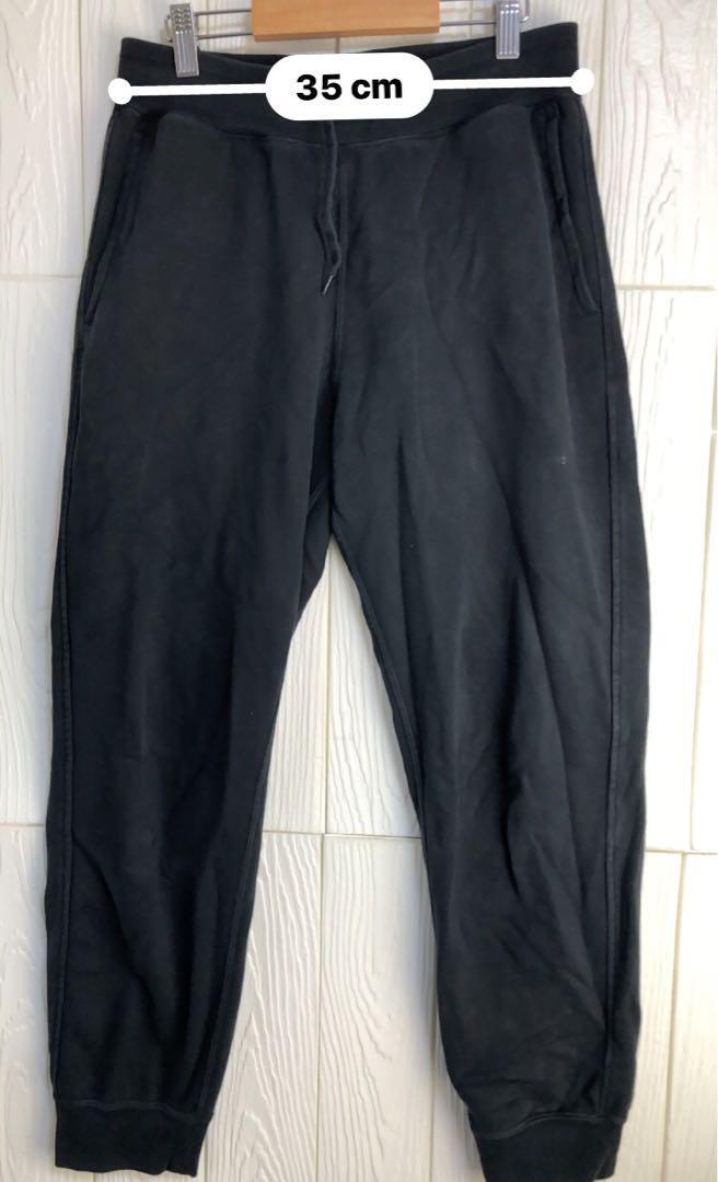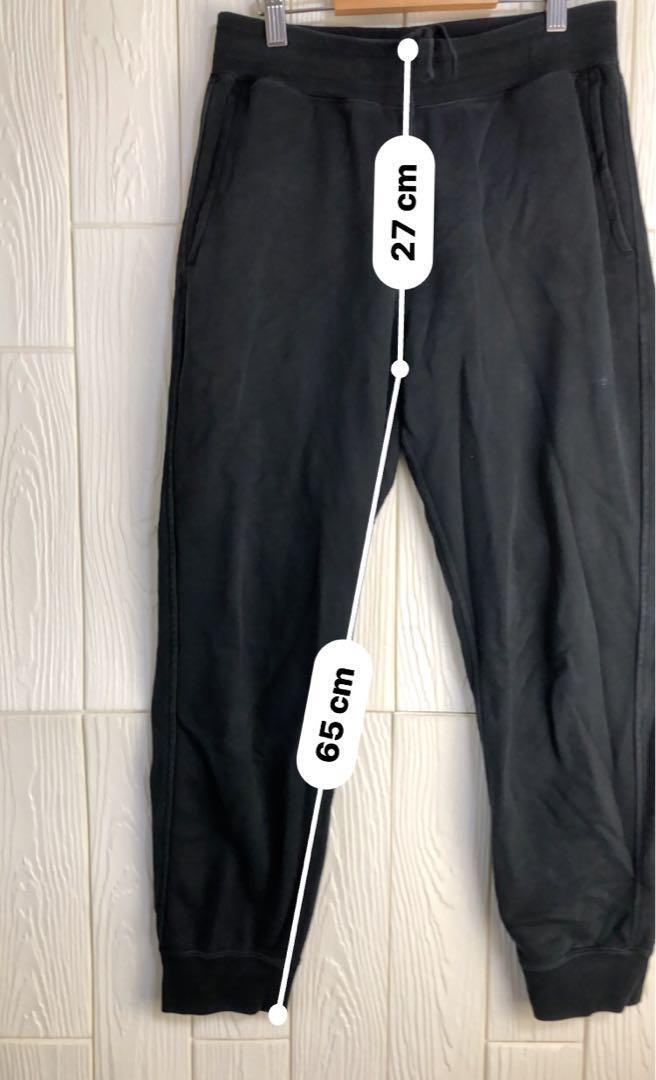 シンプルなブラックのスウェットパンツ、快適なフィット感。