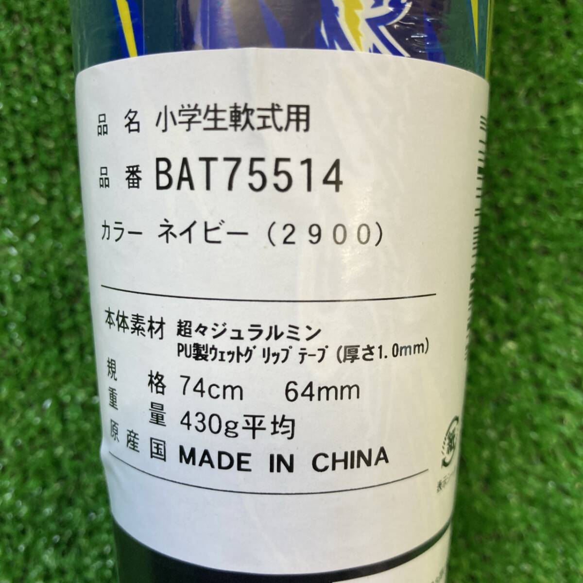 57 ゼット 少年軟式用バット 74㎝430g ミドルバランス ネイビー BAT75514 2900 新品