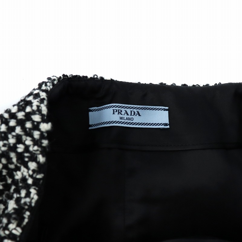 プラダ PRADA ツイードスカート ミドル ジップフライ タイト 38 S 黒 ブラック 白 ホワイト ■GY19 /MQ レディース