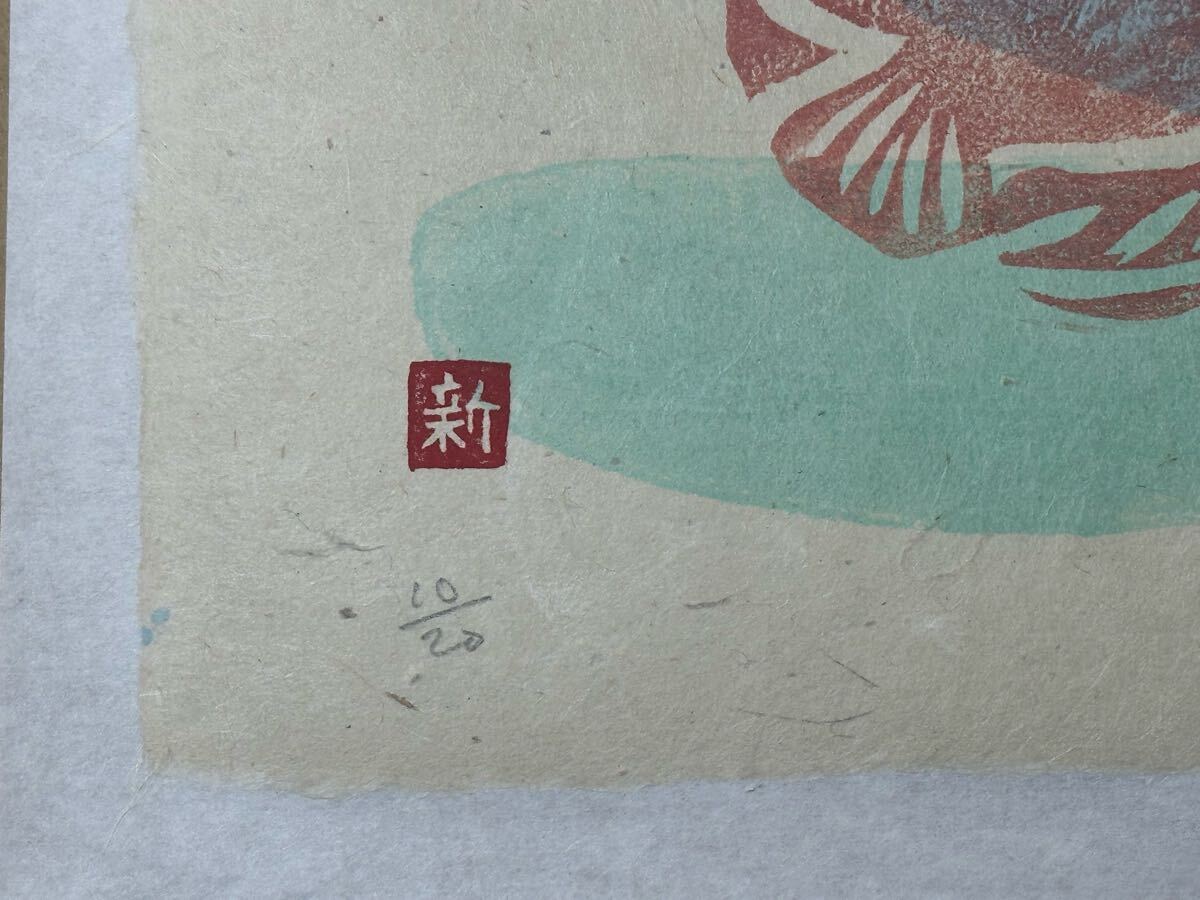 【真作】小町谷新子 芋版画「ディスカス」限定20部 直筆サイン・エディション入り 紙に貼付