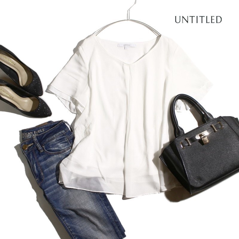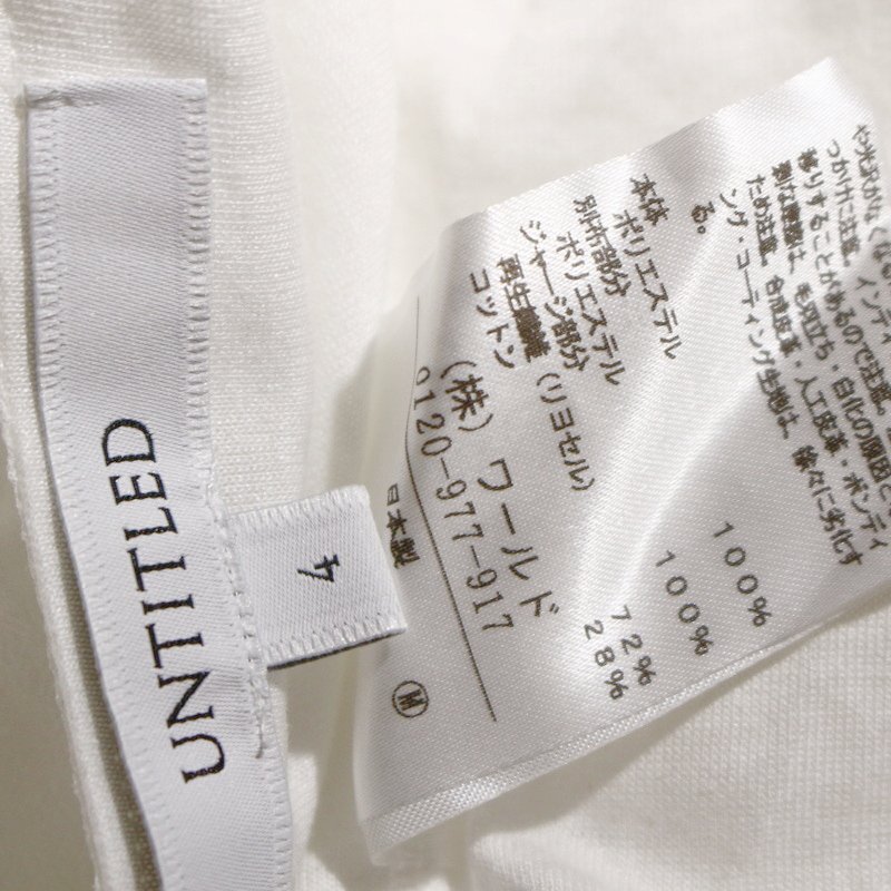 美品 アンタイトル UNTITLED 株) ワールド 夏 ほんのり ストライプ 柄 無地 大きいサイズ 半袖 カットソー 4 ホワイト 白 13号 オフィス