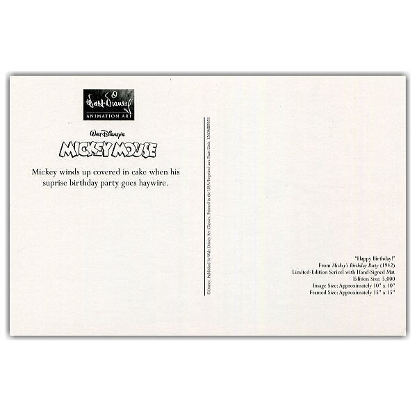 | 商品説明 | ミッキー(バースデー) WDAAセル画ポストカード "Happy Birthday" 10.2×15.2cm 新品 WDAA:ウォルト・ディズニー・アニメーション・アート |