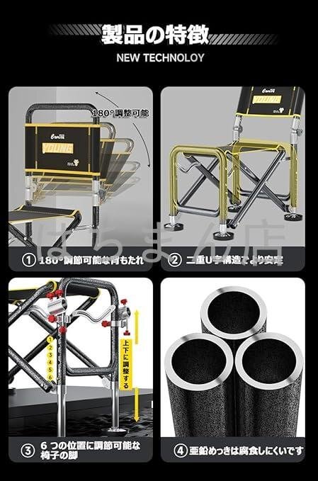 【折りたたみデザイン】釣り椅子はフレームが炭素鋼(補強亜鉛メッキ塗装)でできており、軽量と同時に、耐久性、耐荷重性も優れています。重さはわずか3kgぐらいで、折り畳み設計で、付属の収納バッグをご利用いただけると、持ち運びがと~てもベンリです。接続部も更新され、加厚の工夫を施され、揺れ揺れとしないで、長持ちです。