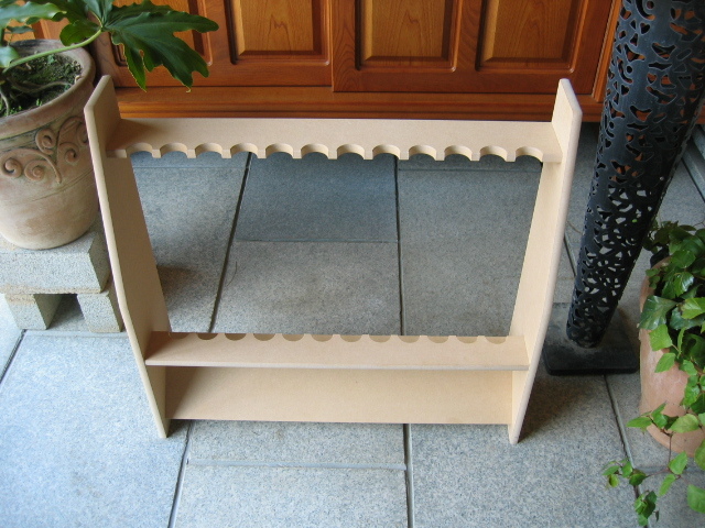 ★新品12本掛けロッドスタンド★木工職人による手作りです。面取りもしてますので、大変綺麗に仕上がっています。★サイズ・・高さ569mm、幅592mm、奥行145mm、板厚12mm、受口直径33mm★本商品は組立て式になっております。説明書を同封していますので、ドライバー1本で5分以内で組立てはできるかと思います★材質は中密度圧縮合板です★ ★組立て式だから送料が安い★ ★ロッドスタンド以外の商品は付属致しません。ロッドスタンドのみです★ |