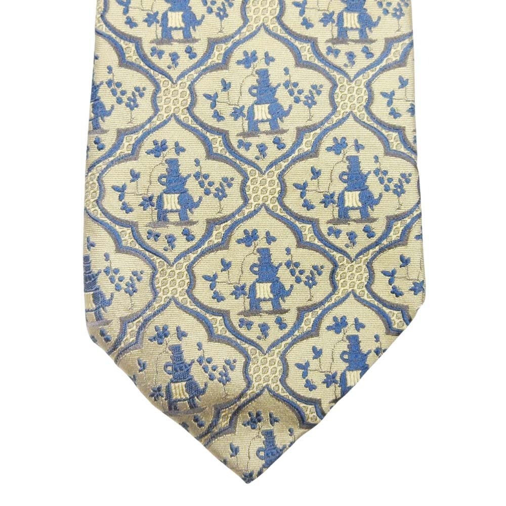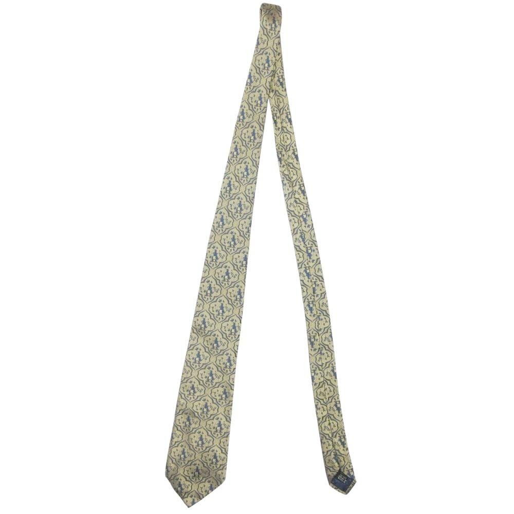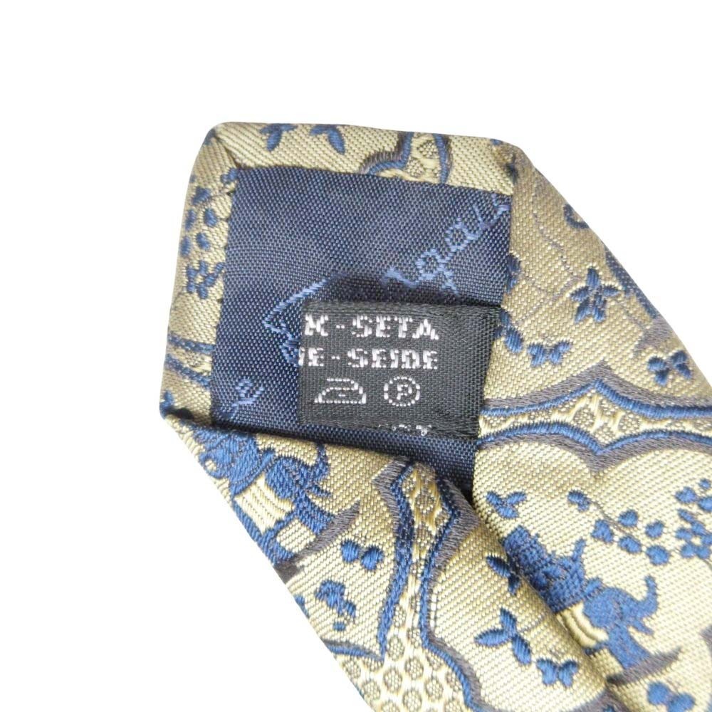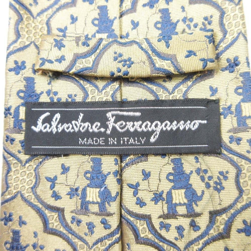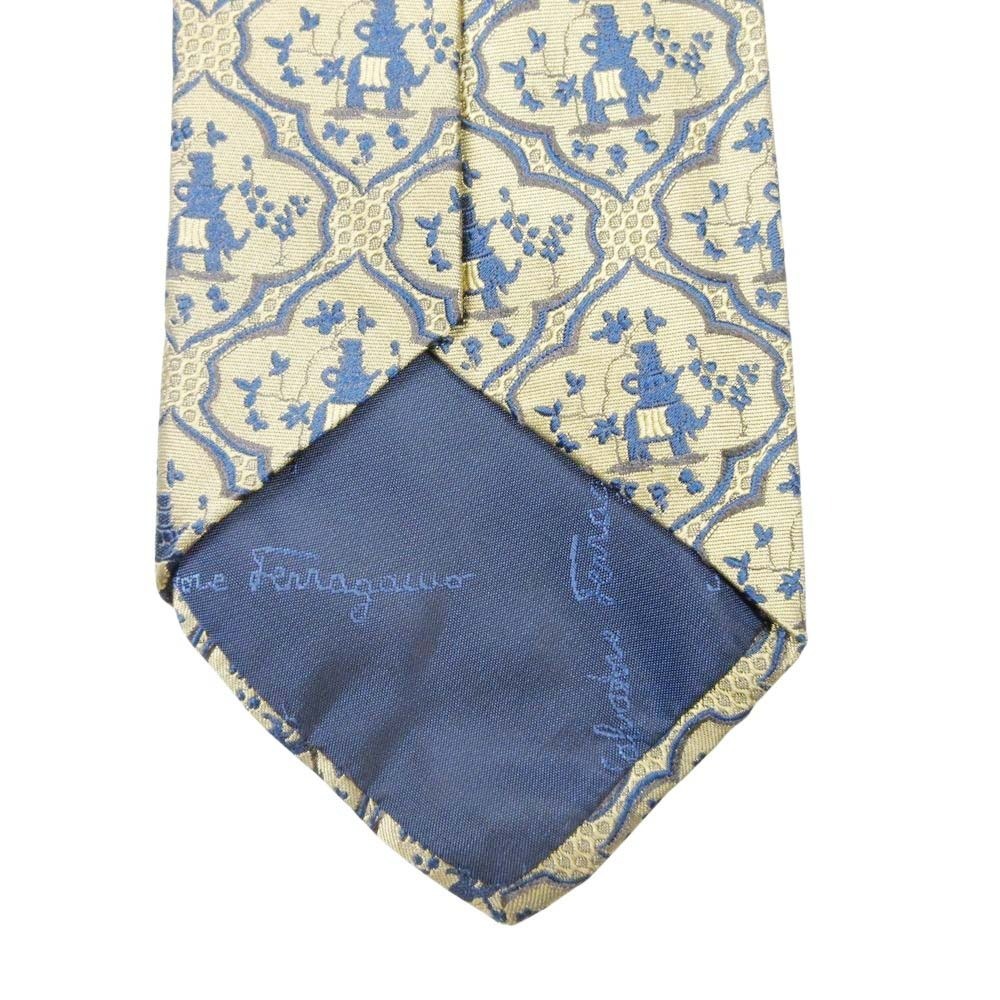 美品 Salvatore Ferragamo サルヴァトーレフェラガモ 総柄 ネクタイ シルクジャガード レギュラータイ ゴールド 紺 ネイビー