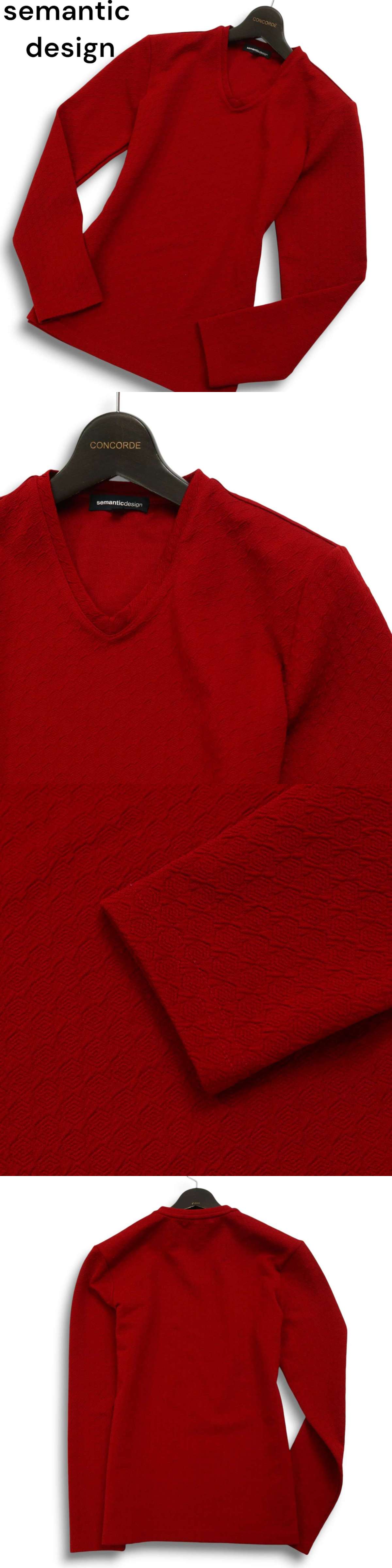 semantic design セマンティック デザイン 通年 ジャガード 総柄★ 長袖 Vネック カットソー ロンTシャツ Sz.S メンズ