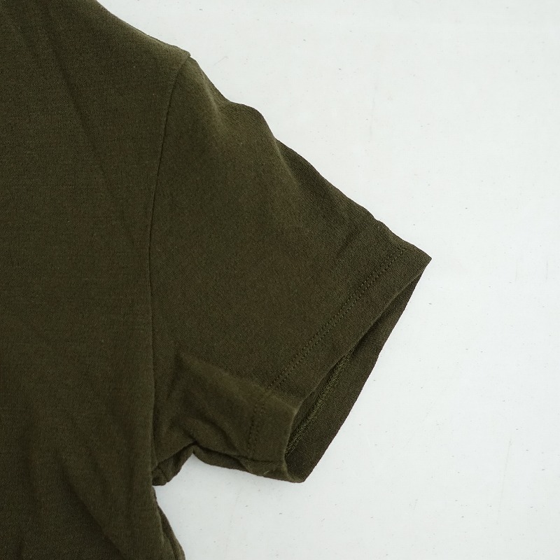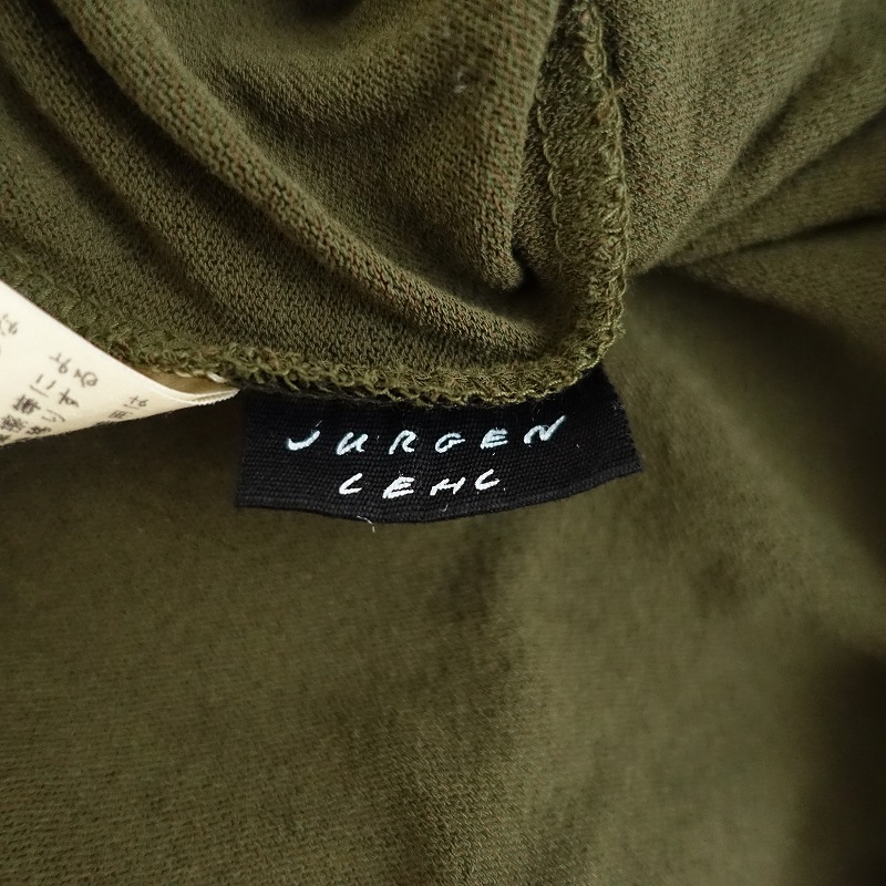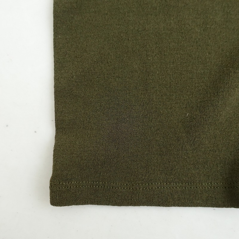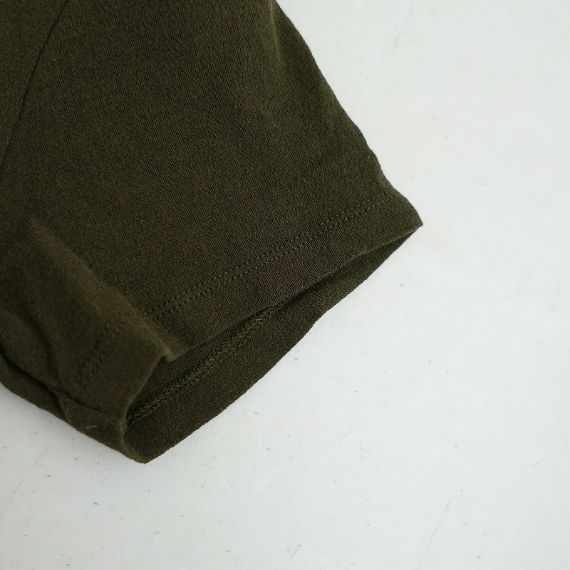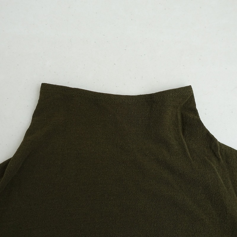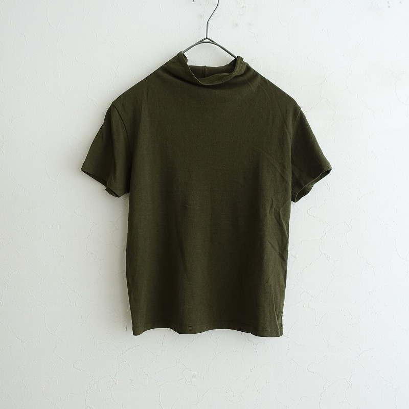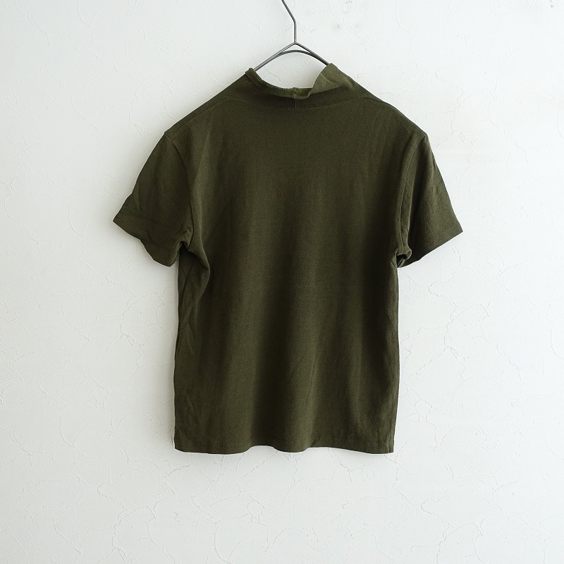 | JURGEN LEHLのコットンニットボトルネック半袖カットソーです。カラーはグリーン系カーキで、ドライな質感のややシャリのある薄手ニット素材で仕立てられております。 |