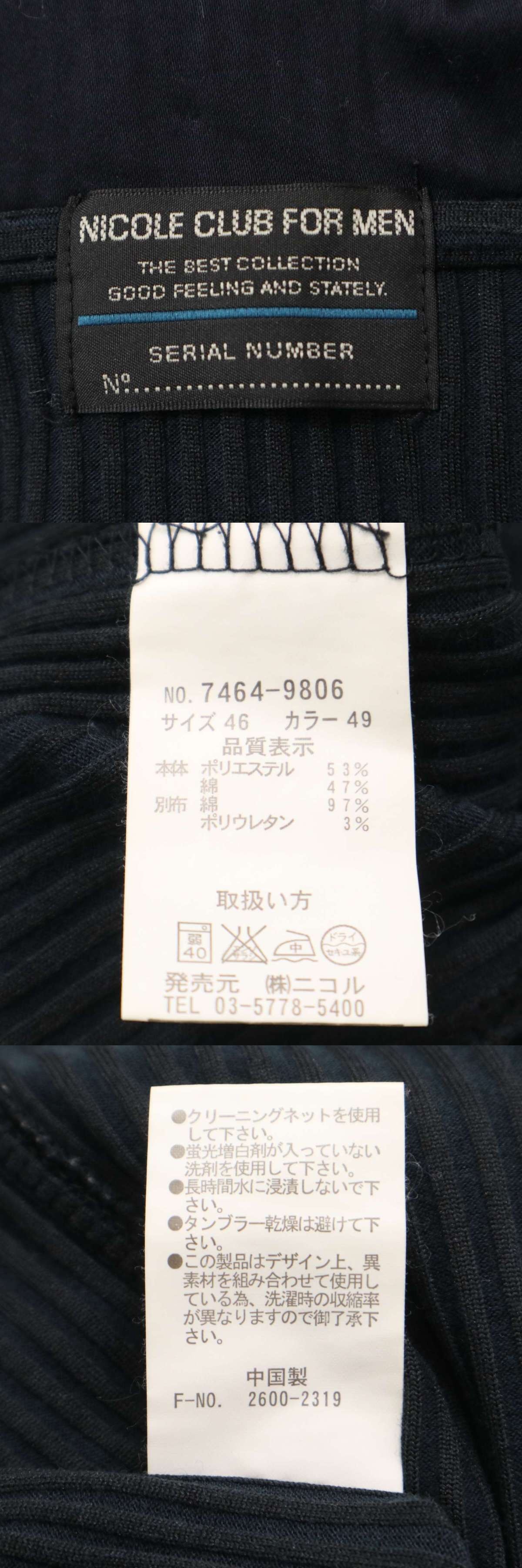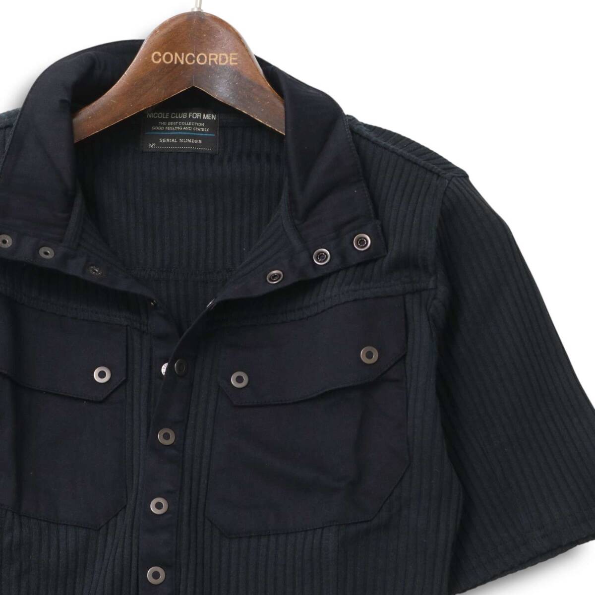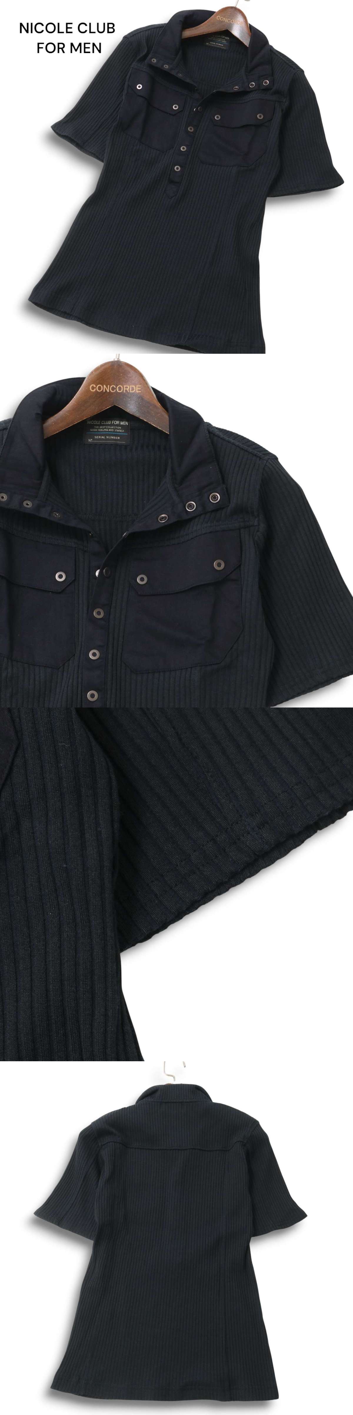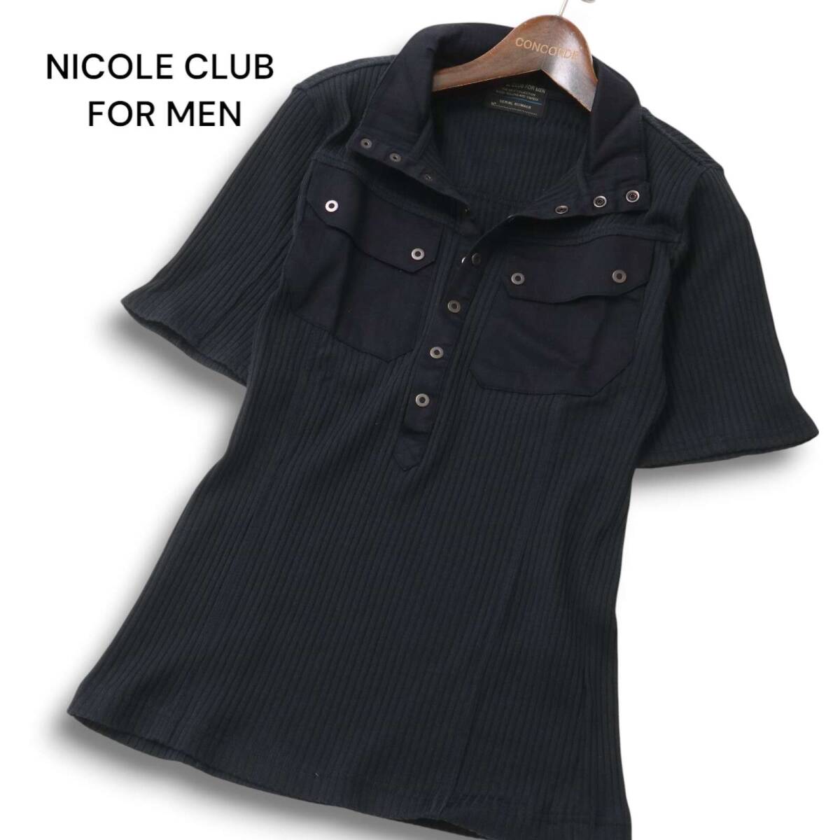 NICOLE CLUB FOR MEN ニコルクラブ フォーメン ポケット切替★ スタンドカラー 半袖 リブ ポロシャツ Sz.46 メンズ ネイビー