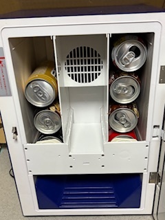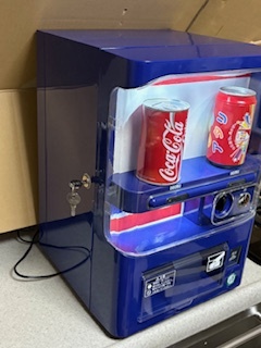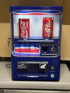 【美品・通電・動作OK】ミニ自動販売機型保冷庫 350mlを8本保存可能! マサオコーポレーション ディスプレイ用コカ・コーラ缶2点も同封 |