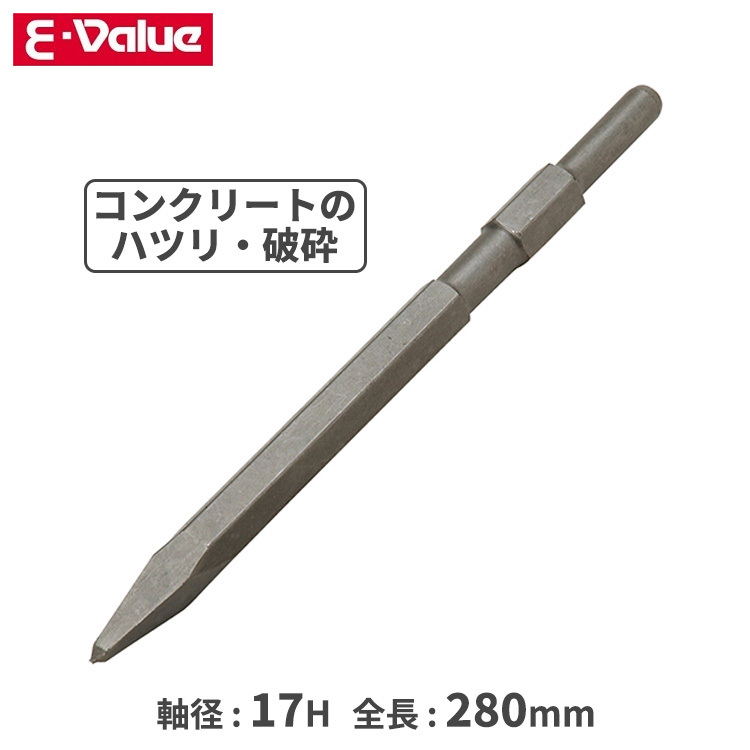 E-Value 六角軸 ブルポイント 17Hx280mm コンクリート ハツリ作業 破砕作業 はつり 斫り