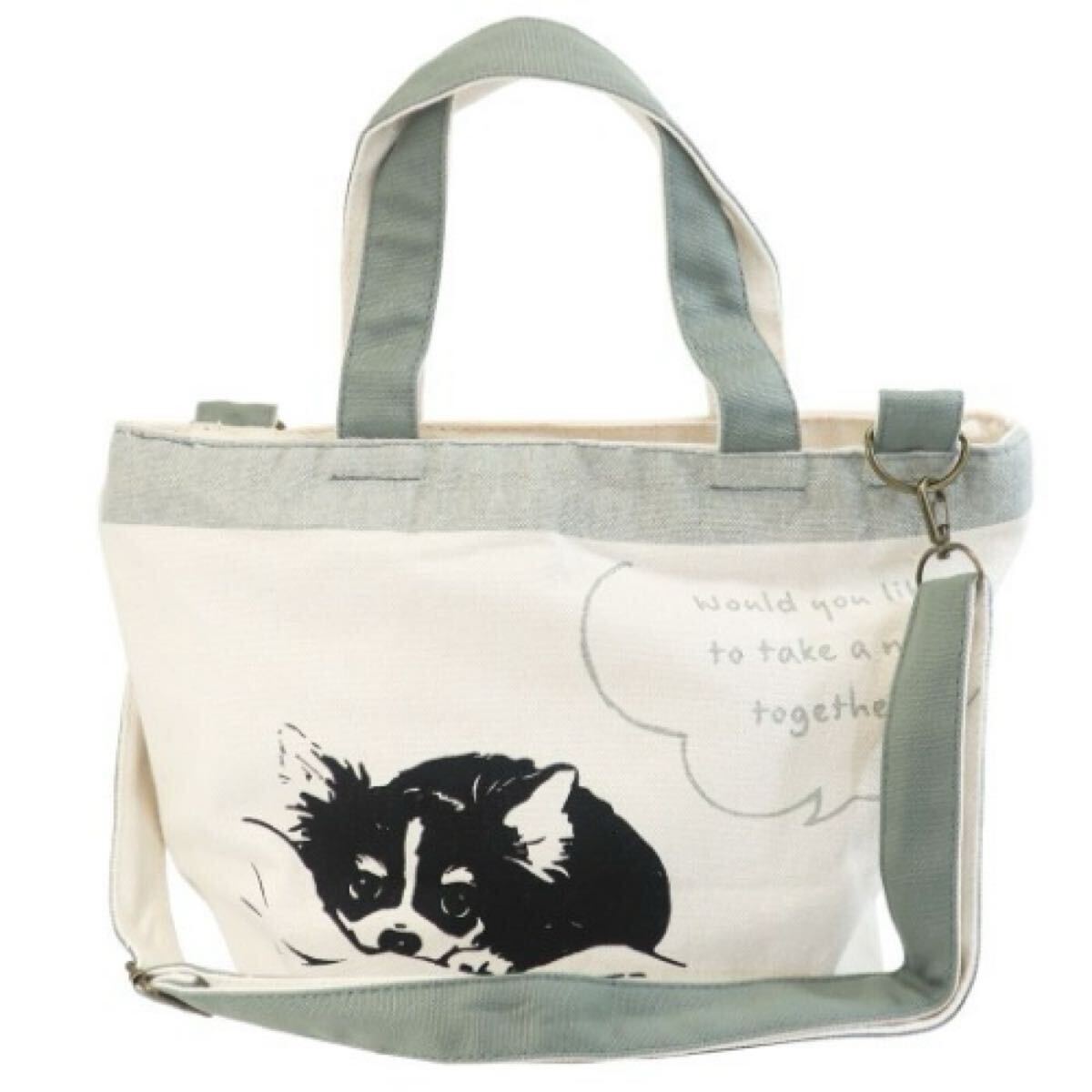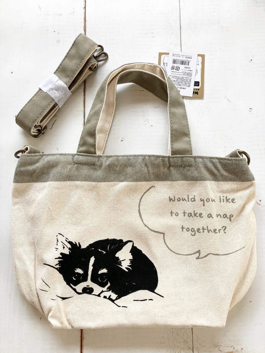 ミニトートバッグ♪ ランチトート ショルダー付き チワワのココ ポケットたくさん 2wayバッグ