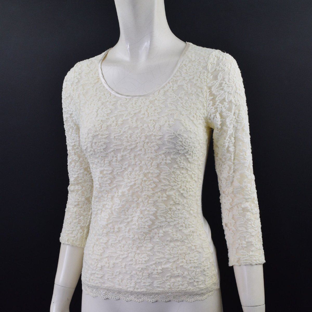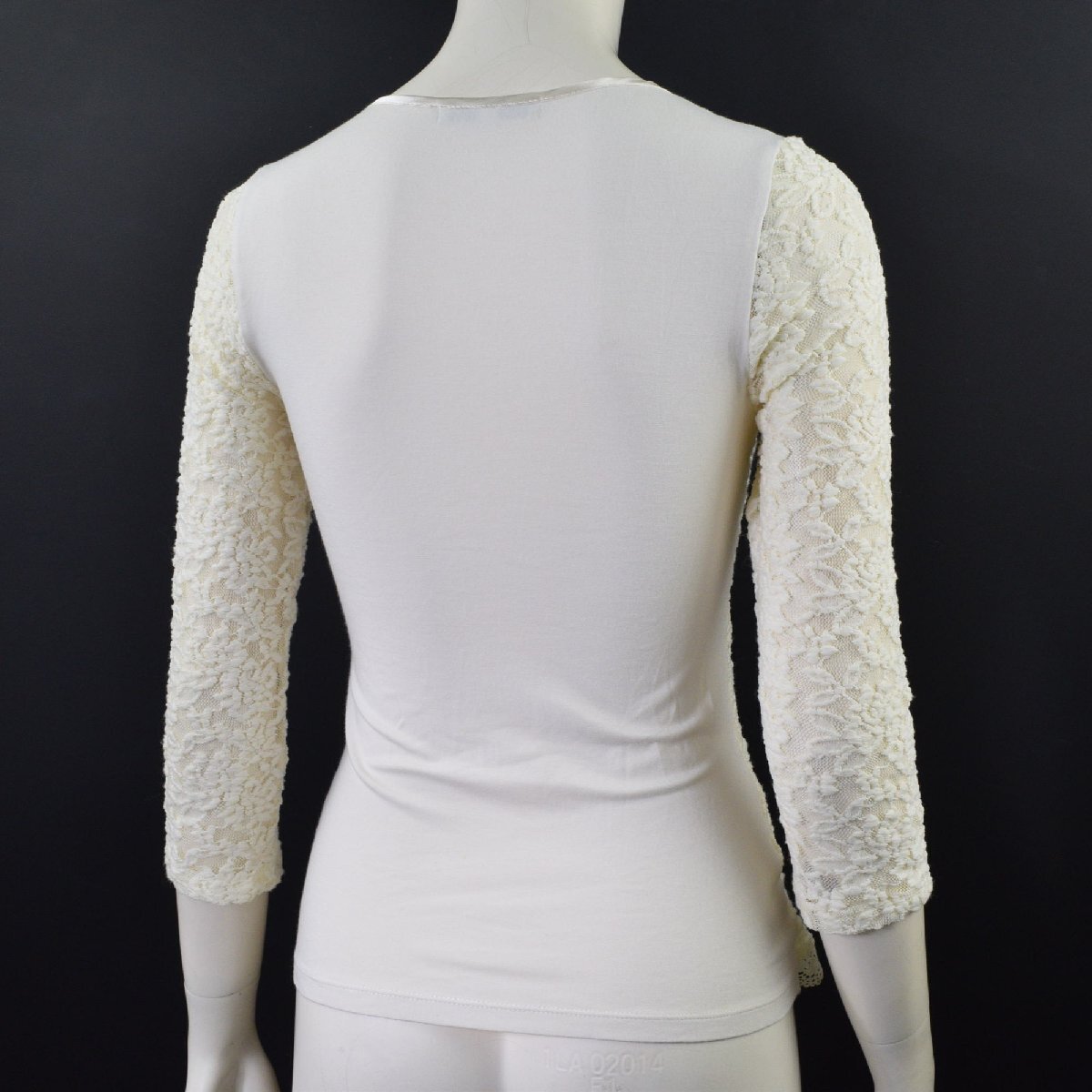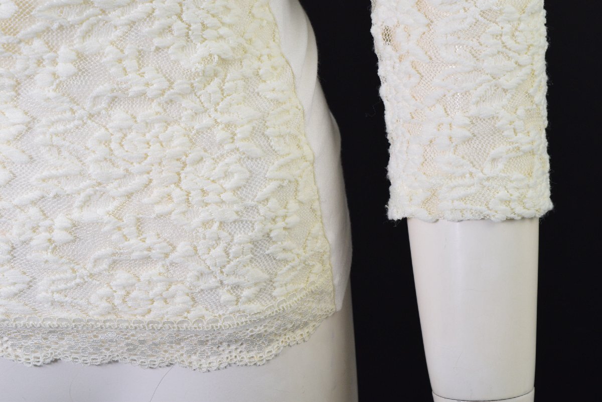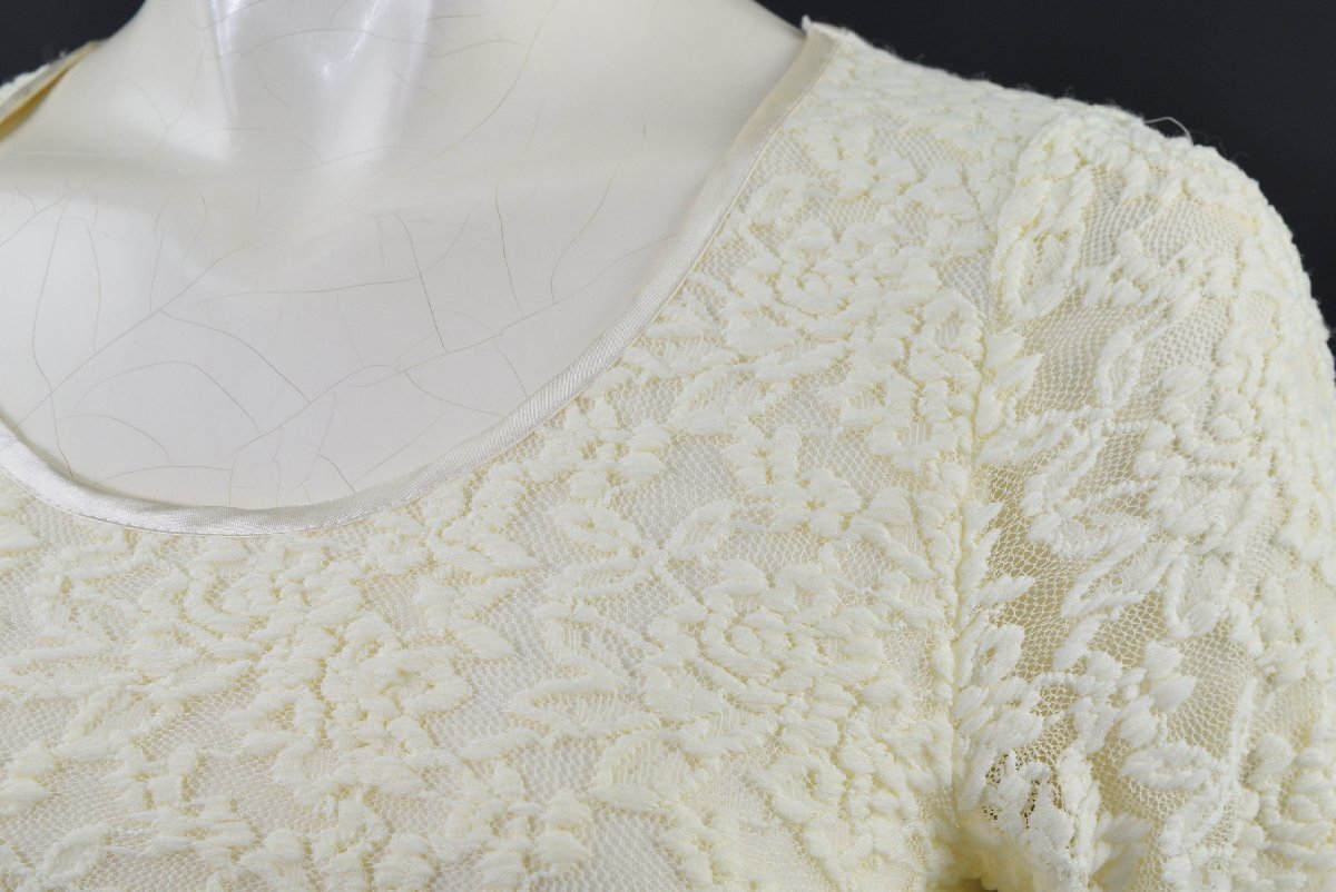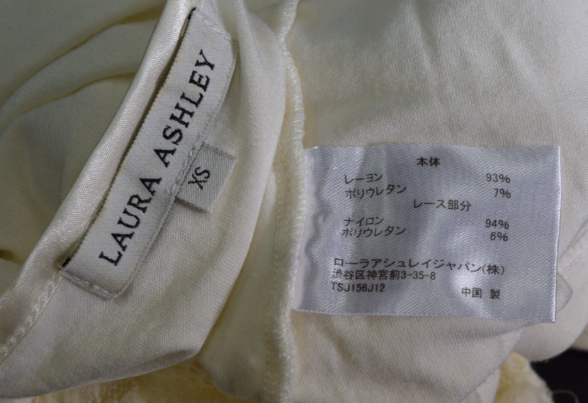 5000-KB00009★ローラアシュレイ LAURA ASHLEY★ ケミカルレース レーヨンストレッチカットソー XS 小さいサイズ 白系 ホワイト 七分袖