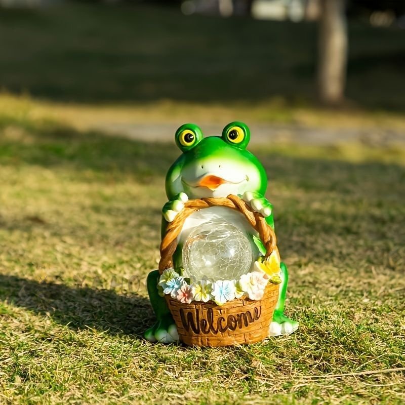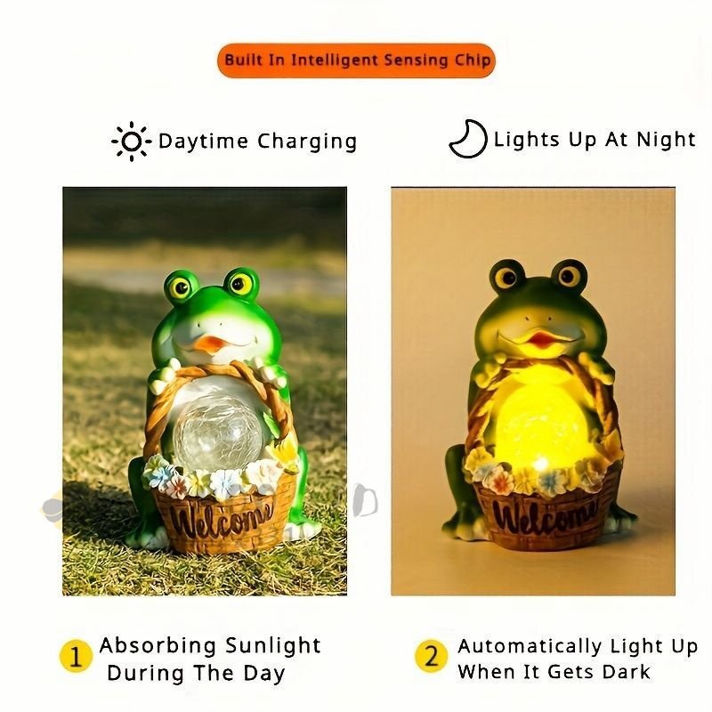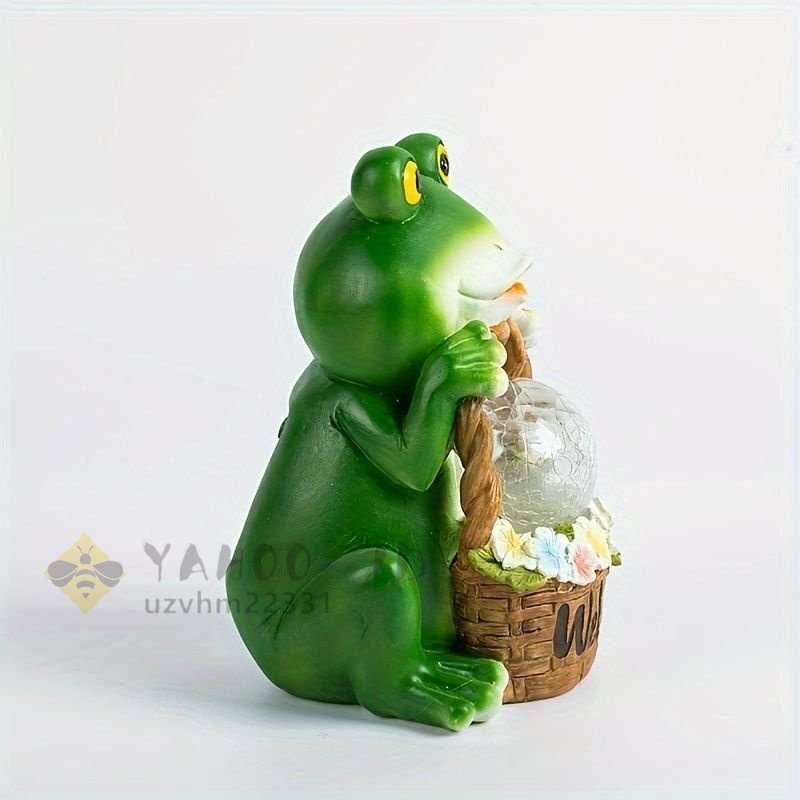 ガーデンを可愛らしく彩る、かえるの形をしたソーラーライト。昼間に自然光をためておいて、夜にはふんわりと優しい光を放つことができる便利なアイテムです。お庭やテラスに設置すれば、癒しの空間が生まれ、ガーデニングの楽しみも広がります。樹脂素材でできているので、防水性もあり屋外でも安心してご使用いただけます。