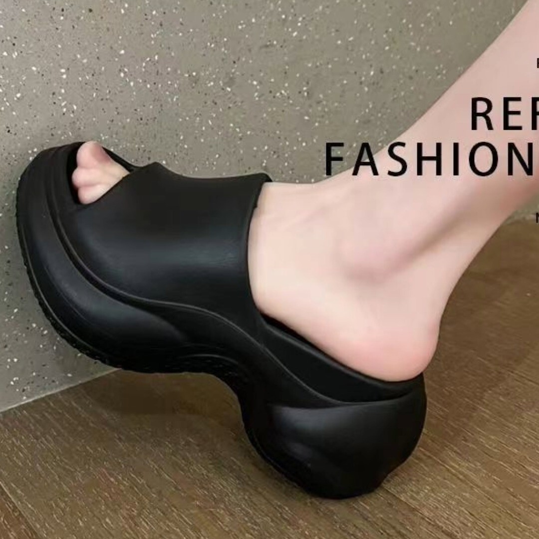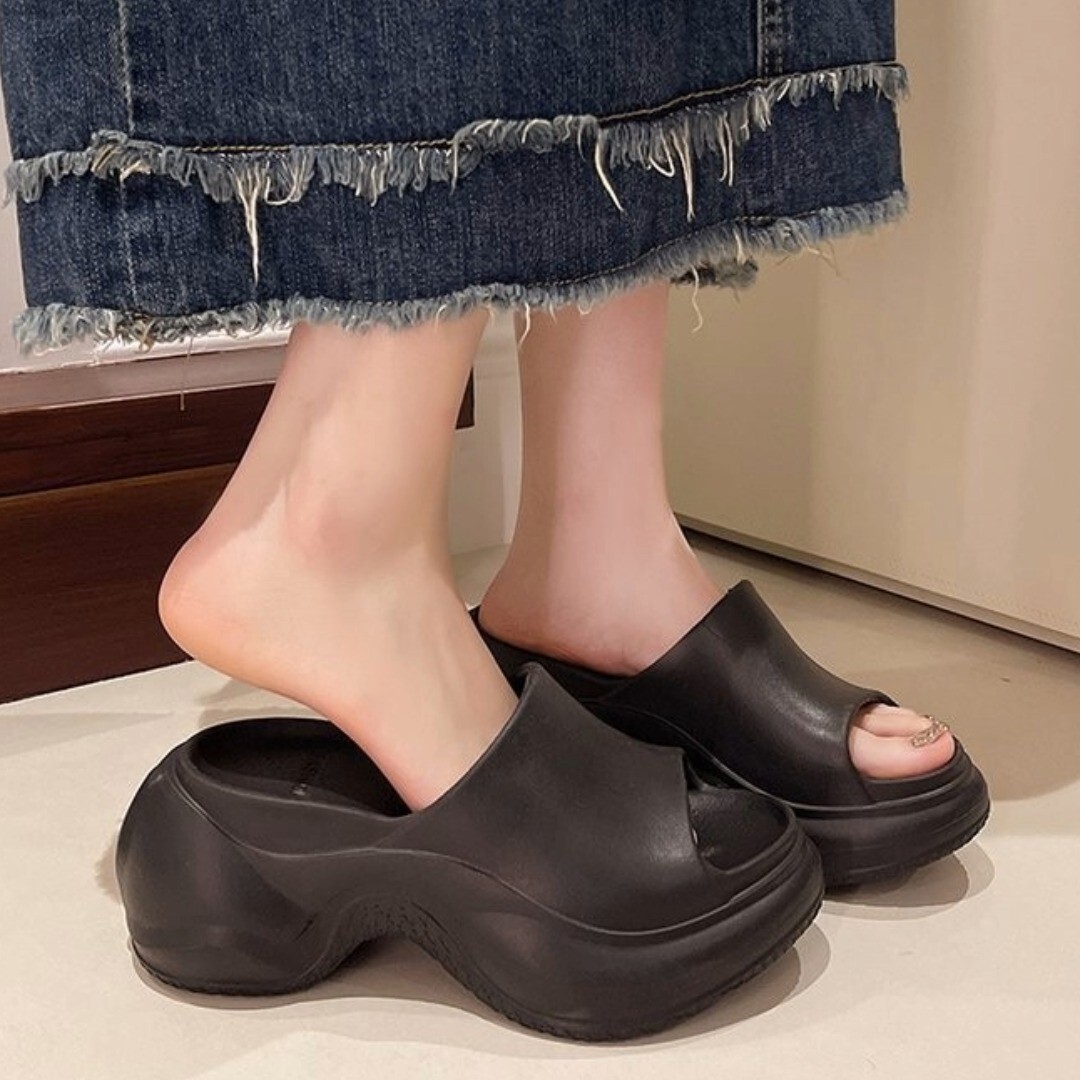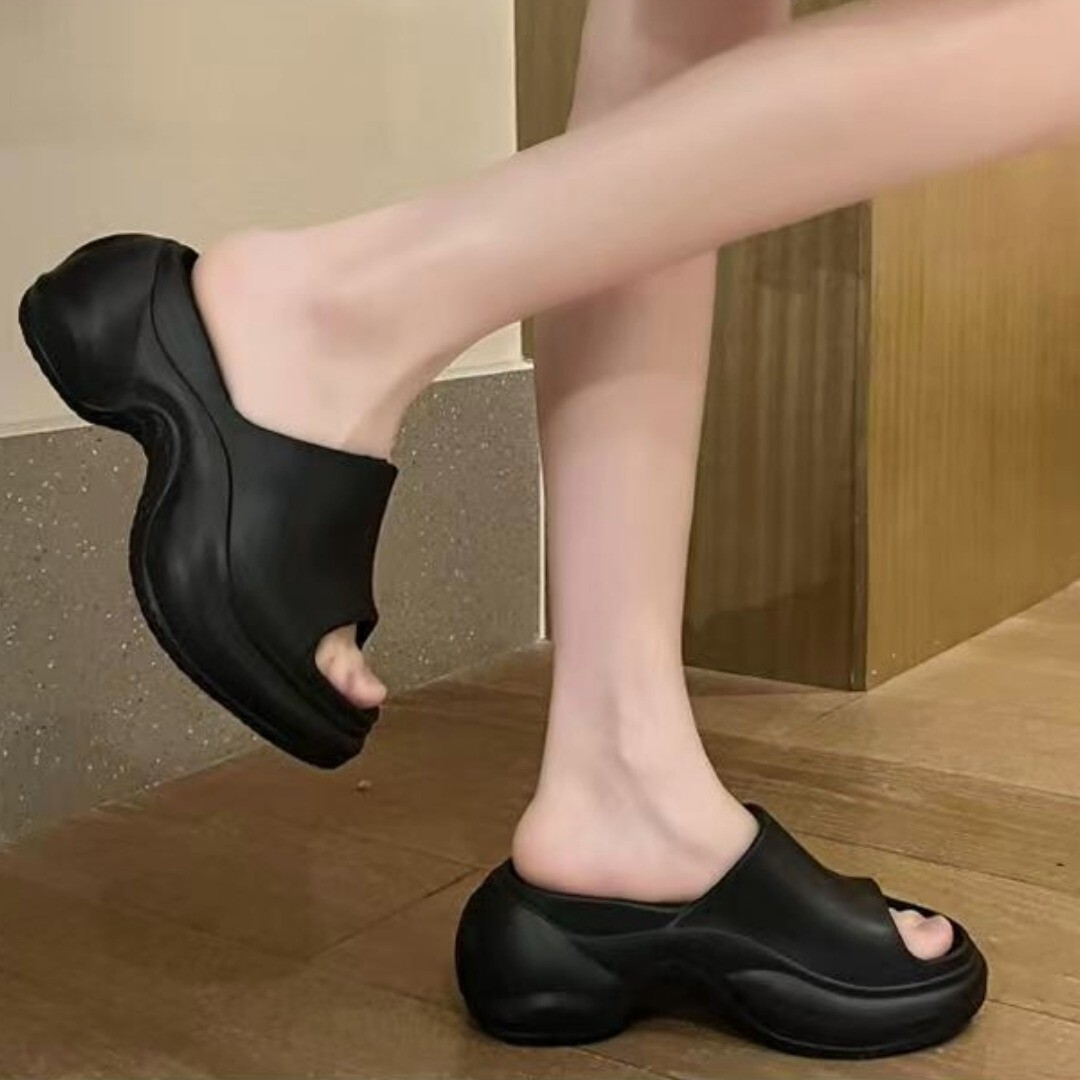 sa92 黒【24.5~25cm】洗える EVA 厚底 8cm 身長アップ スリッパ サンダル 軽量 レディース 室内外兼 滑り止め付き 黒 2