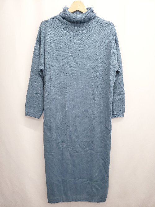 ◇ ⊇ mili an deni ミリアンデニ サイドスリット ハイネック 長袖 ロング ワンピース サイズL ブルー系 レディース E