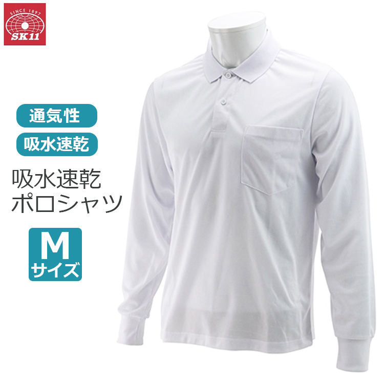 SK11 長袖 ポロシャツ ホワイト 白 M メンズ 男性用 作業着 吸水速乾 通気性 M-WHT-1P