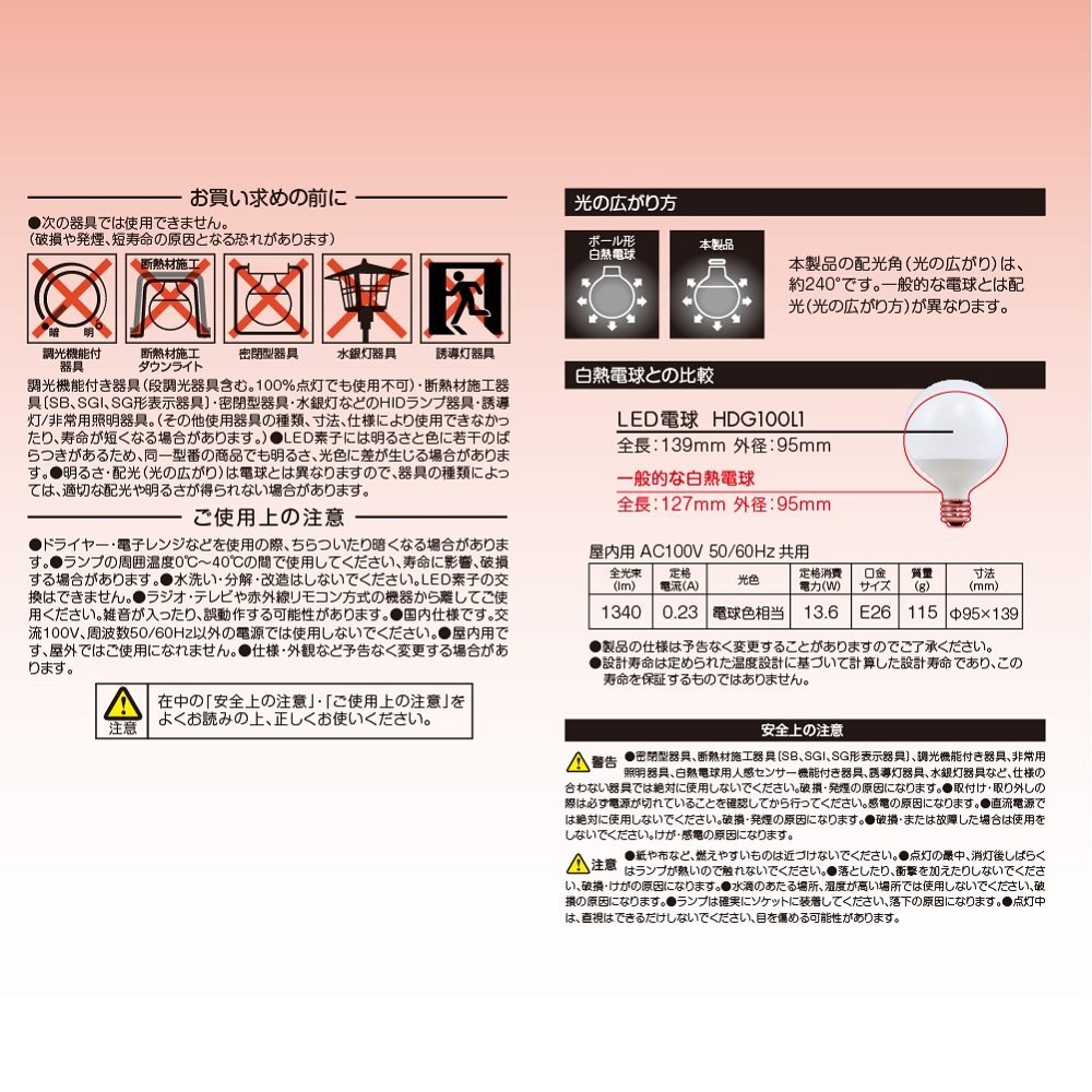 スタイルド LED電球 一般電球・ボール電球形 口金直径26mm 100W形相当 電球色相当(13.6W・1340ルーメン) G95(95mm径