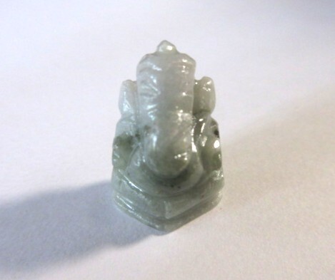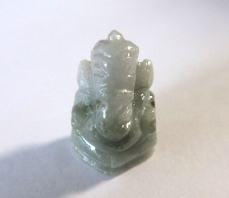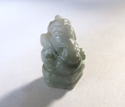 淡いグレーグリーンのヒスイのガネーシャです。ミャンマー産の非加熱です。