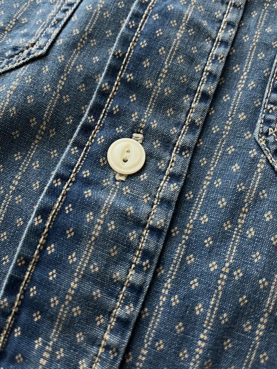 クラシカル且つパンチが効いた総柄がグッドルックなお勧めのインディゴプリントワークシャツです。往年の名作をぜひこの機会にご検討ください。