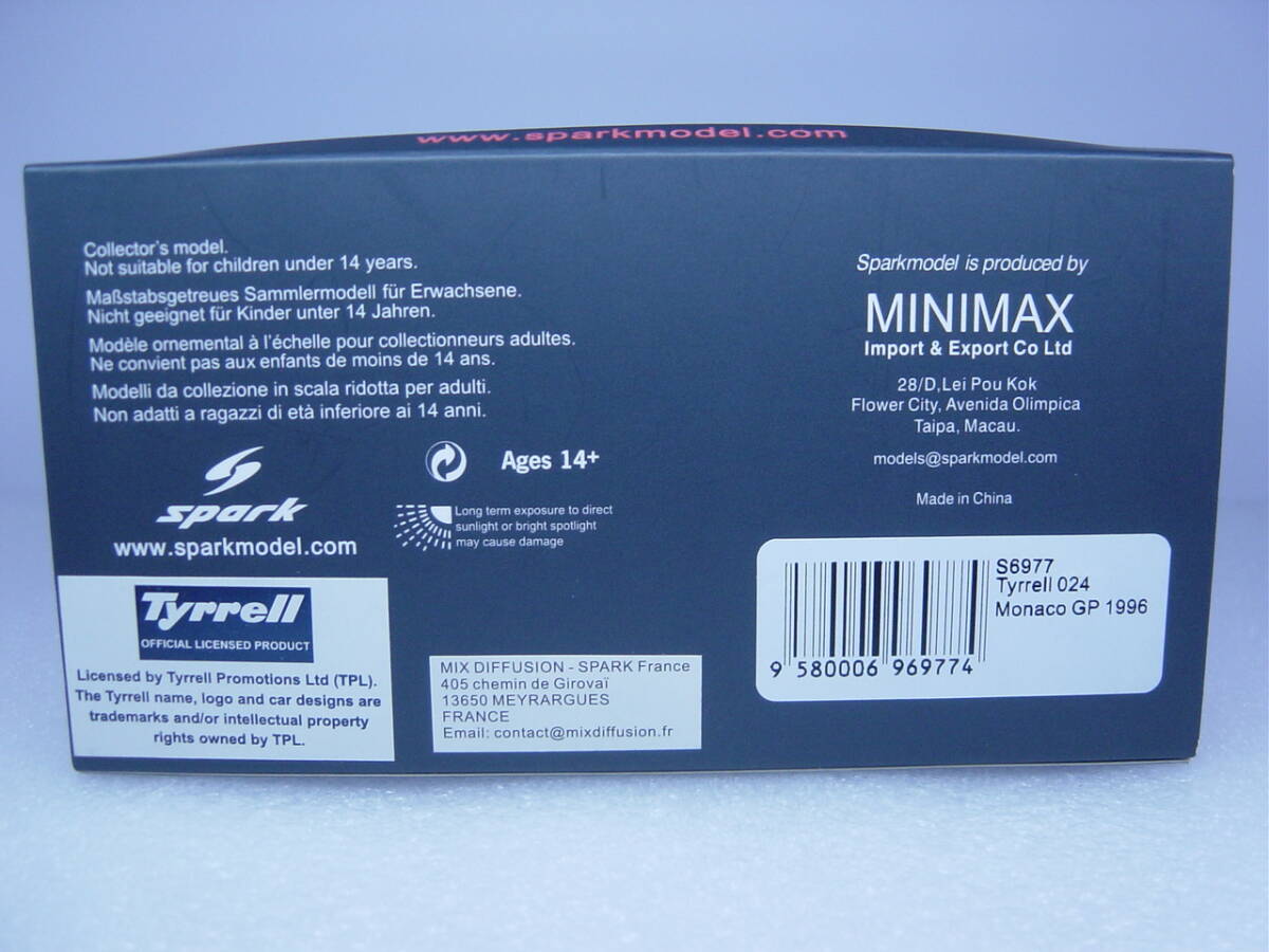 spark 1/43 Tyrrell 024 5th Monaco GP 1996 #19 M.Salo ティレル ミカ・サロ モナコGP マイルドセブン MILD SEVEN仕様