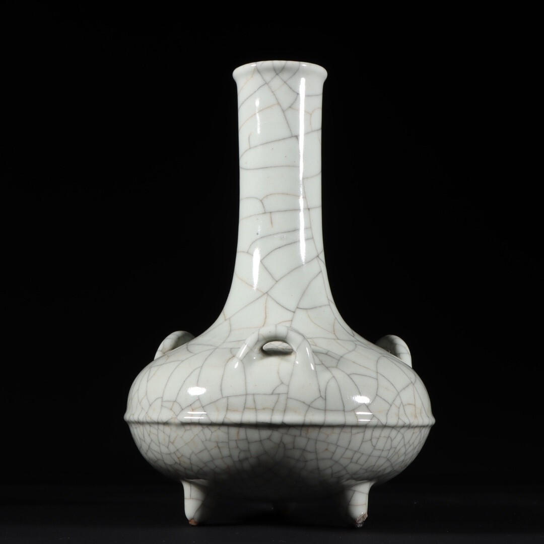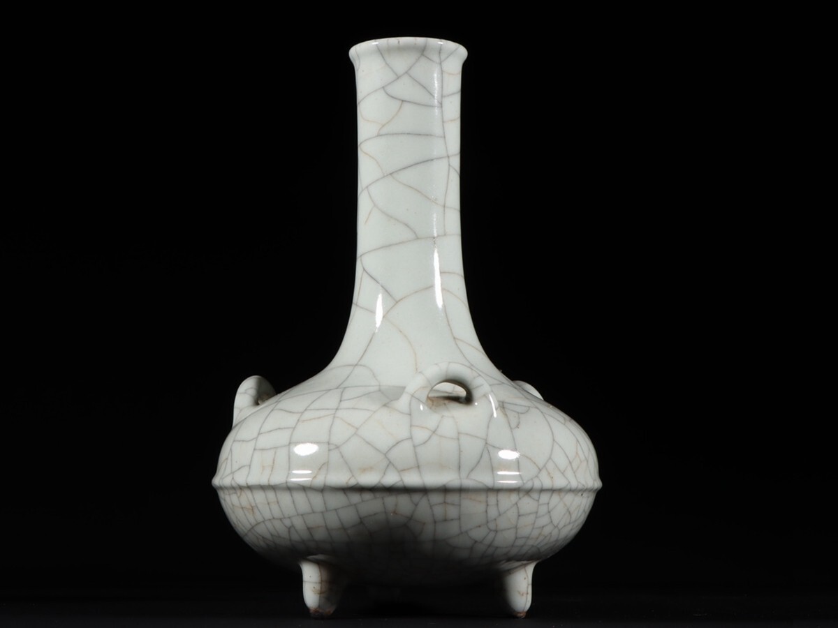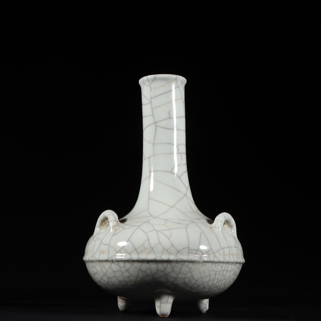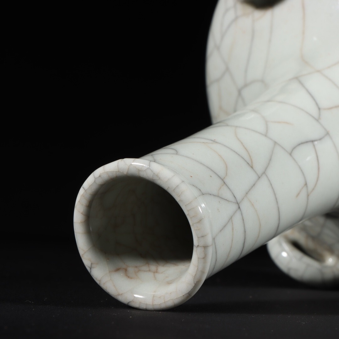 「清 乾隆年製 陶磁器 汝官釉 三系瓶」染付 置物 擺件 古賞物 中国古美術 旧蔵出