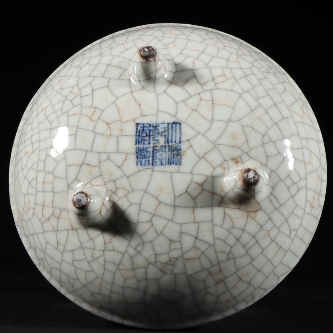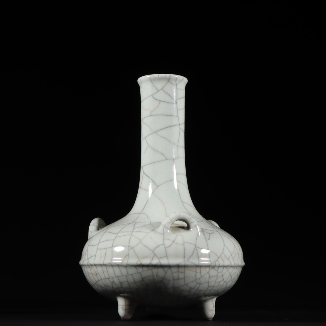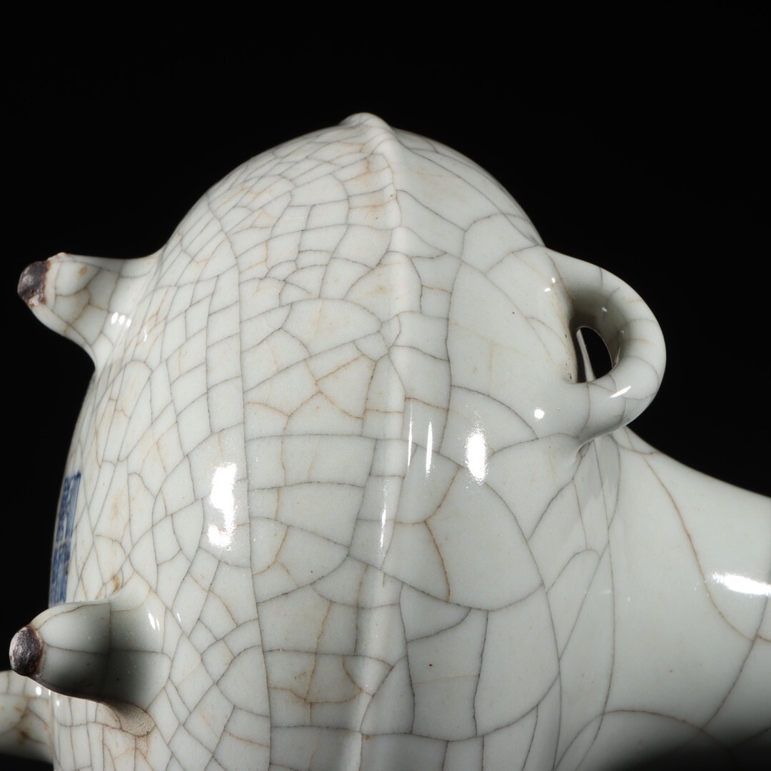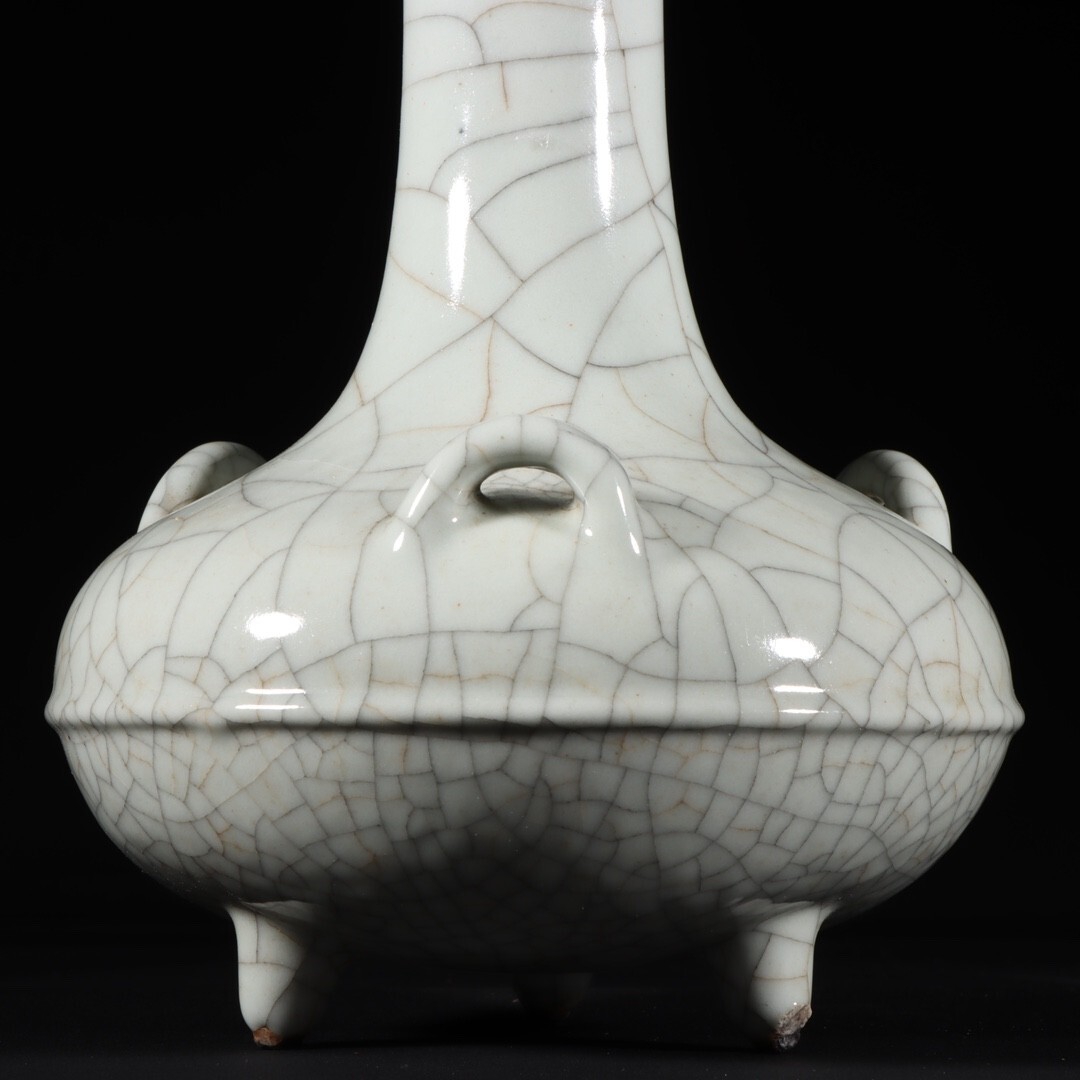 「清 乾隆年製 陶磁器 汝官釉 三系瓶」染付 置物 擺件 古賞物 中国古美術 旧蔵出
