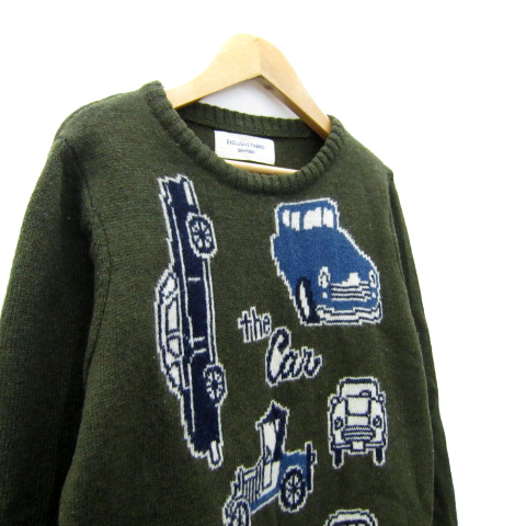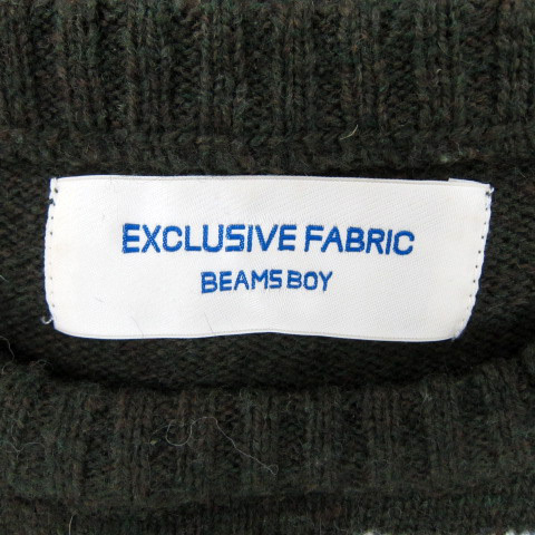 ビームスボーイ BEAMS BOY ニット セーター 長袖 ラウンドネック 総柄 カーキ /SY35 レディース