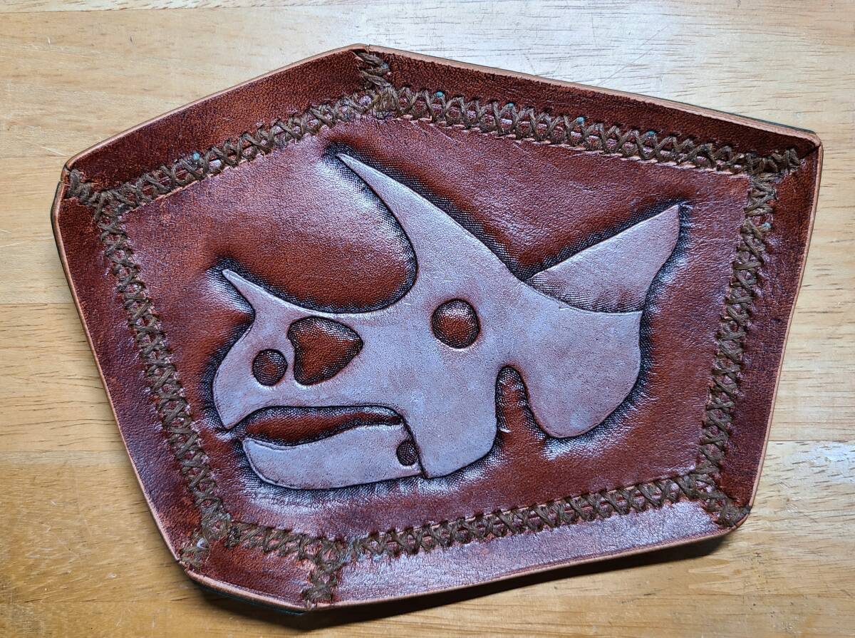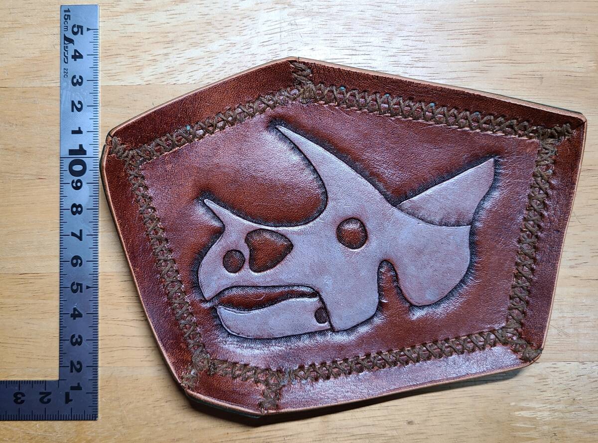 レザークラフト ハンドメイド 恐竜化石モチーフのレザートレイです。