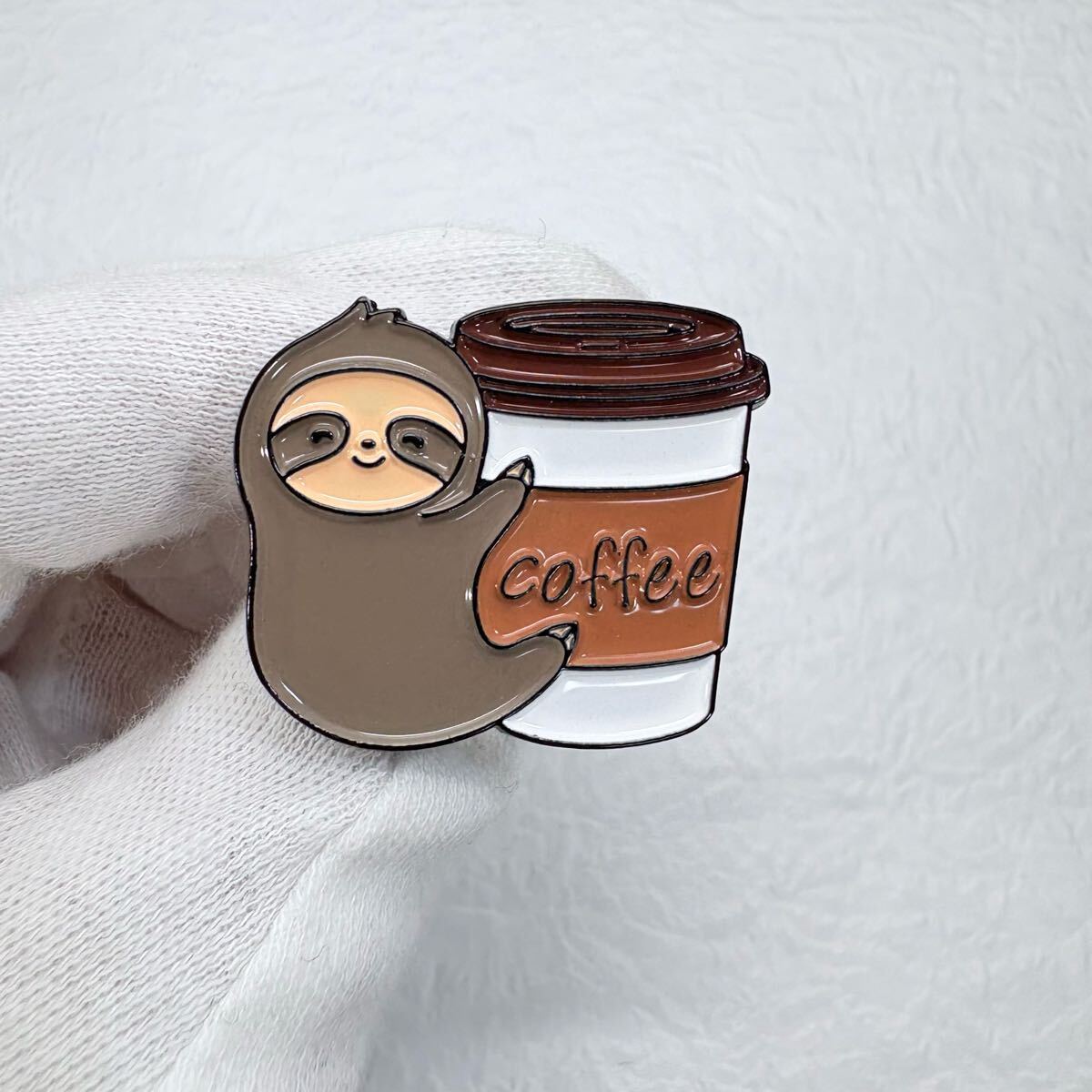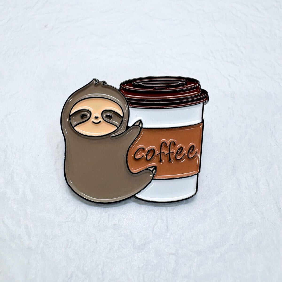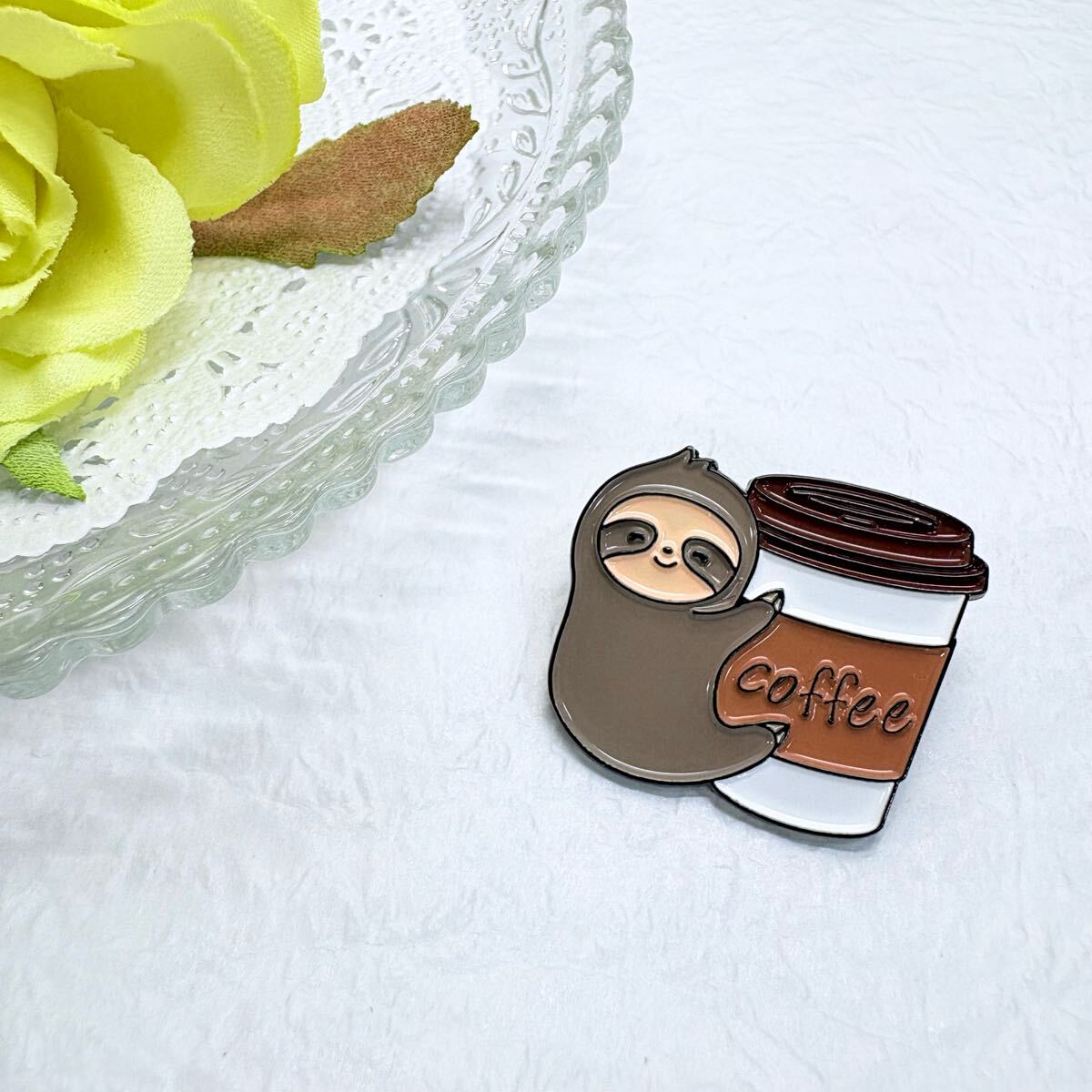 【ピンバッジ】ナマケモノとcoffee コーヒー 動物 癒し かわいい