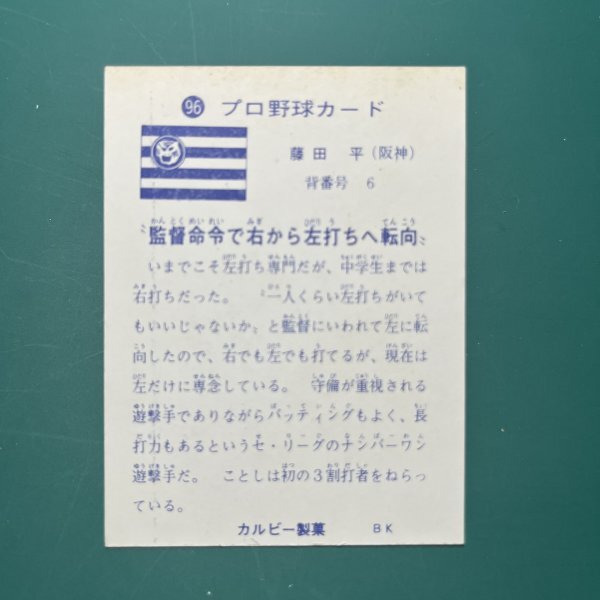 1973年 カルビー プロ野球カード 73年 96番 阪神 藤田 左天 Bタイプ   WKH41