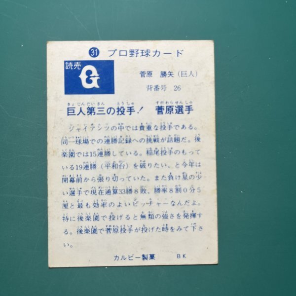 1973年 カルビー プロ野球カード 73年 31番 巨人 菅原   WKH41