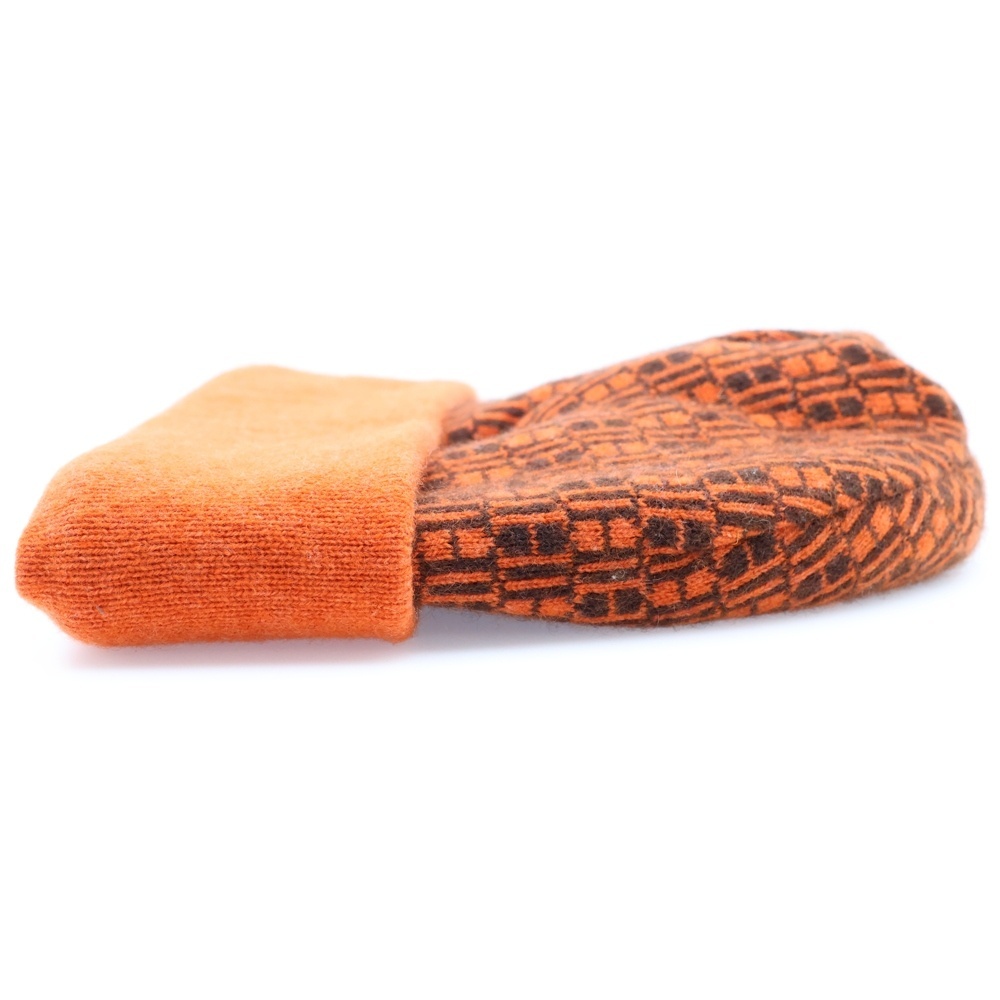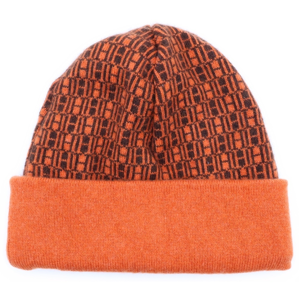 品名Hロゴ ニット帽 ニットキャップ 帽子 カシミヤ オレンジ×ブラウン
