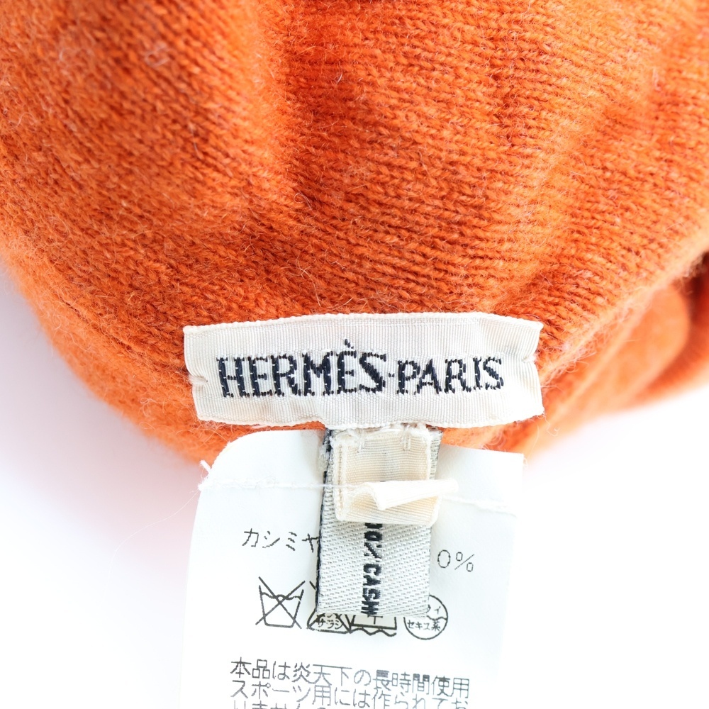 HERMES エルメス Hロゴ ニット帽 ニットキャップ 帽子 カシミヤ オレンジ×ブラウン