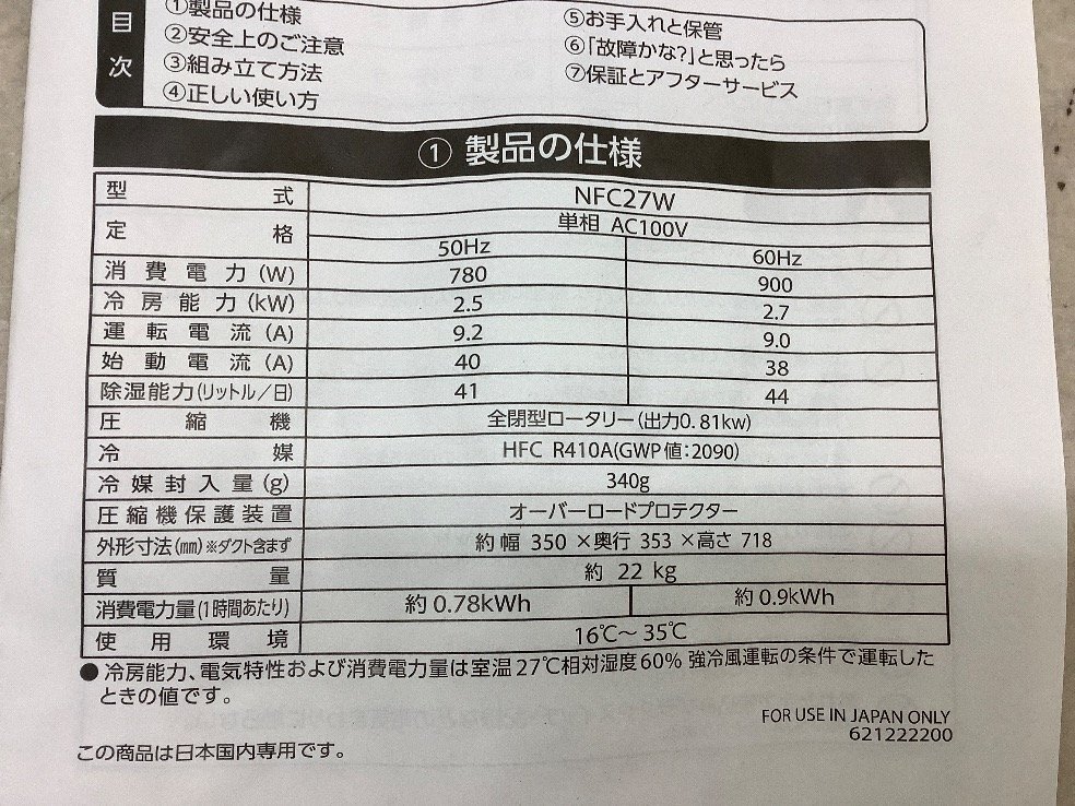 広電/NAFCO 移動式クーラー NFC27W 通電のみ確認済 2023年製/ACB 中古品