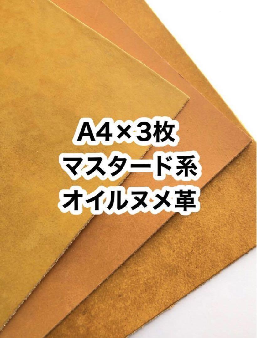 【 A4×3枚 】厚さ約1.5~2ミリ マスタード系 オイルヌメ革 レザークラフト 推し活 推し色 推しカラー グッズ作り アイドル