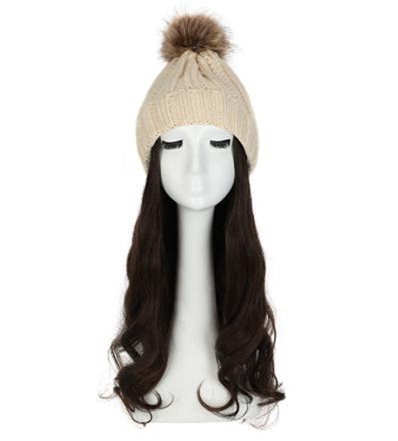 ウィッグ付きニット帽 ニット帽/ベージュ ウィッグカラー/K ロングヘアー イメチェン 髪色チェンジ コスプレ