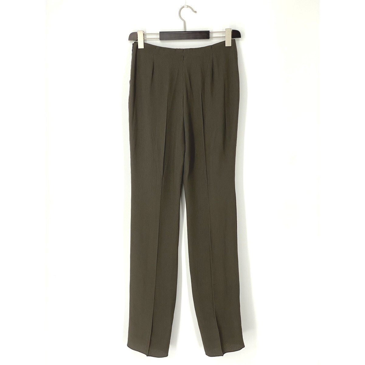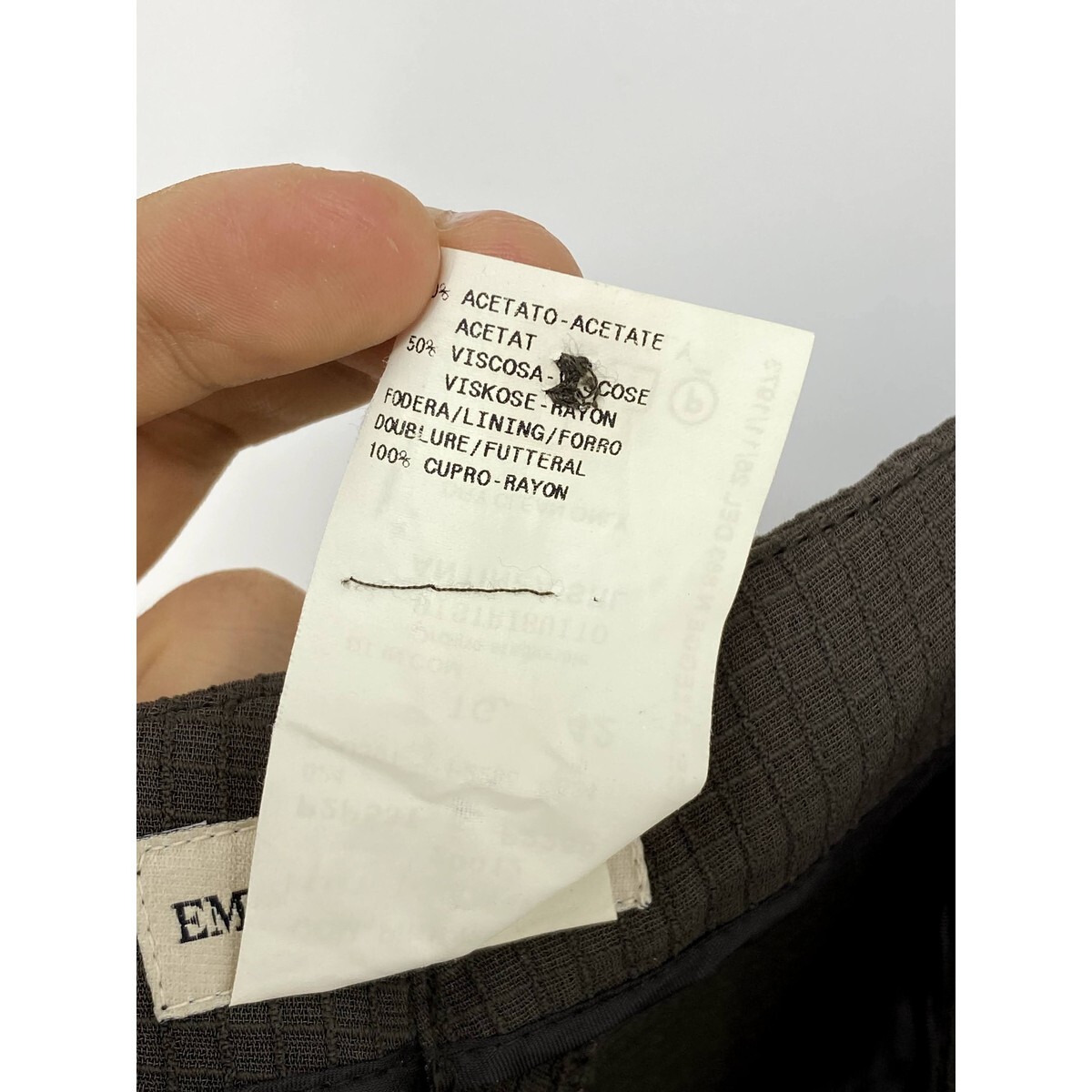A7383/訳あり 極美品 春夏 EMPORIO ARMANI アルマーニ アセテート レーヨン チェック テーパード スラックス パンツ 42 M程 茶/レディース