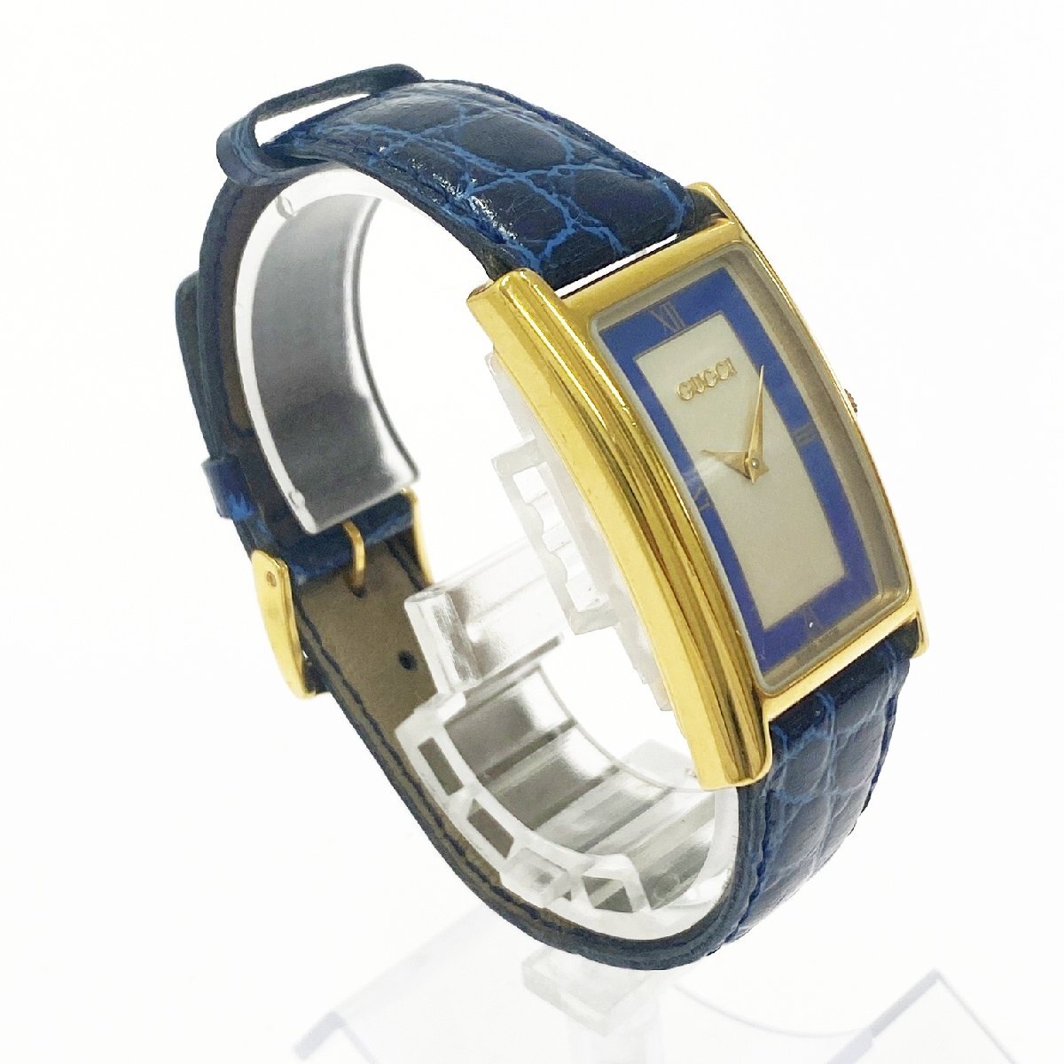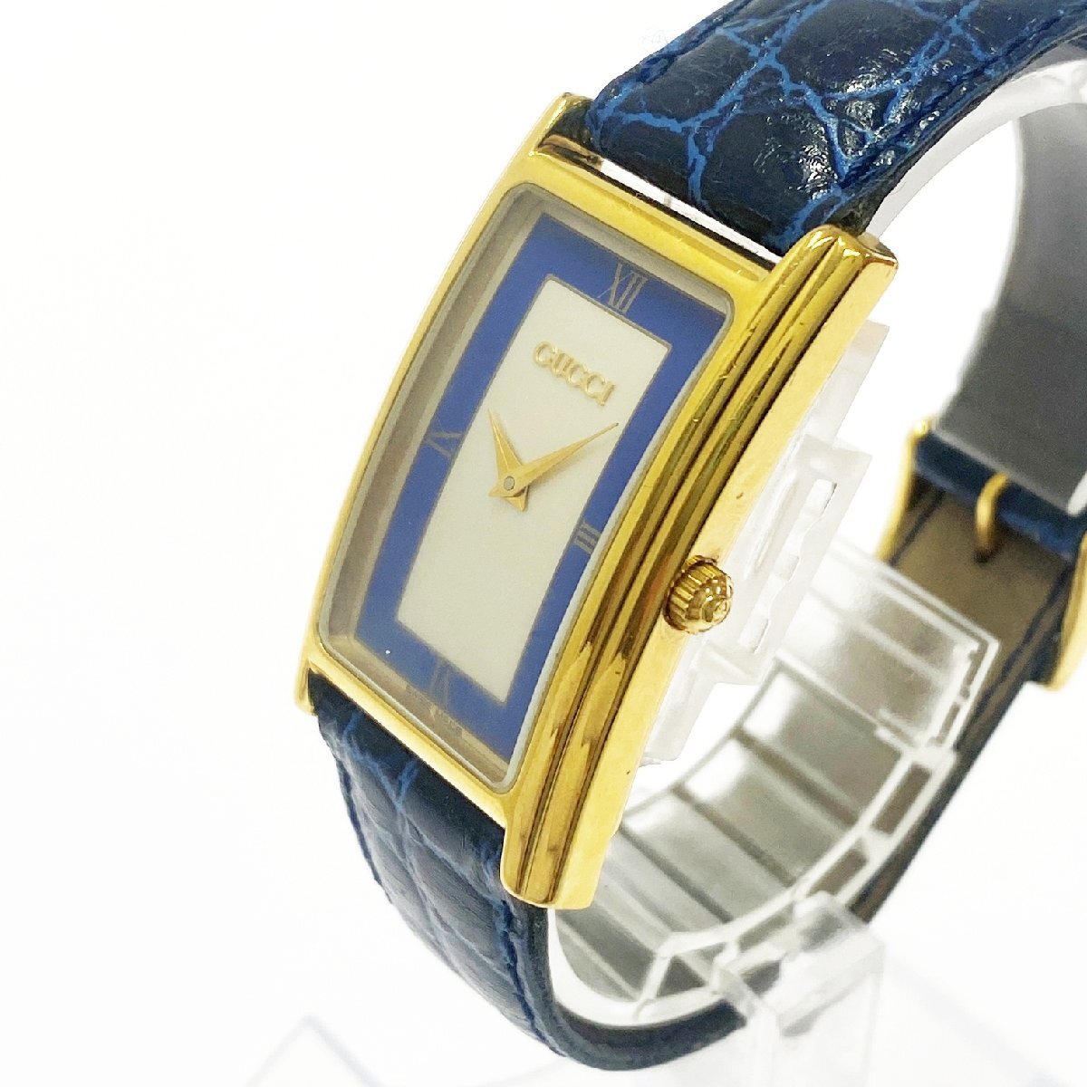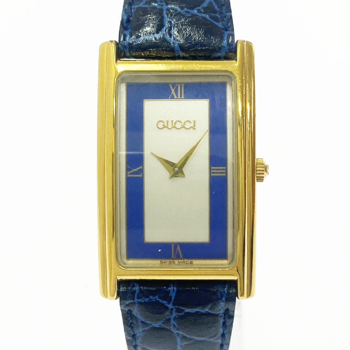 【1円スタート】GUCCI グッチ 2600M スクエア GP×革ベルト シルバー文字盤 クオーツ メンズ腕時計 471539