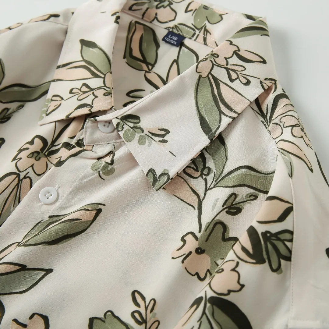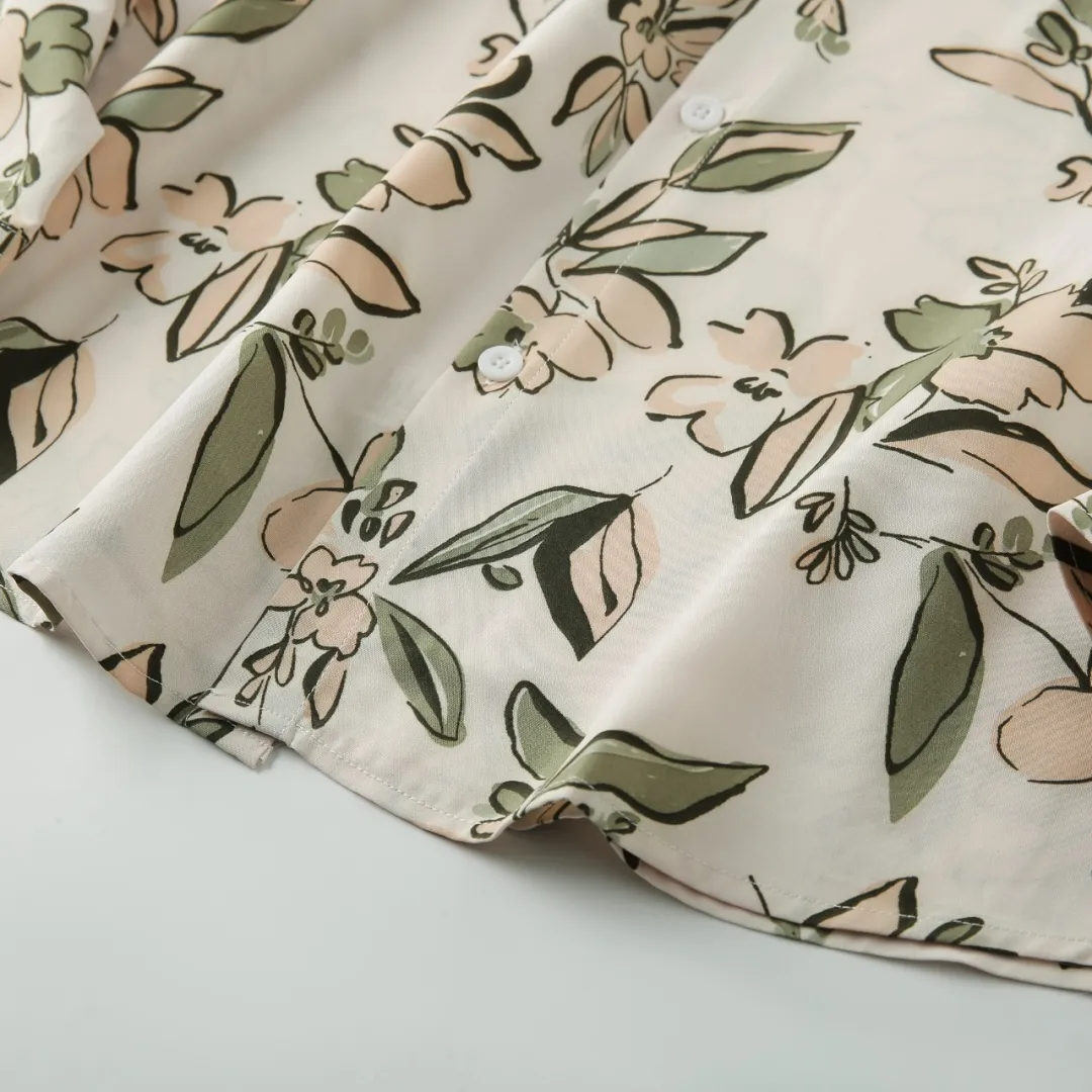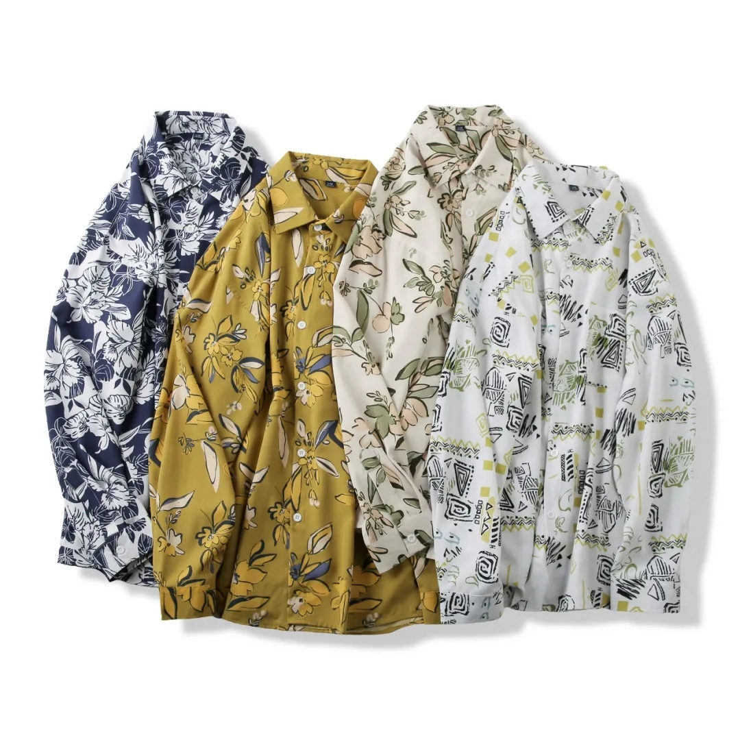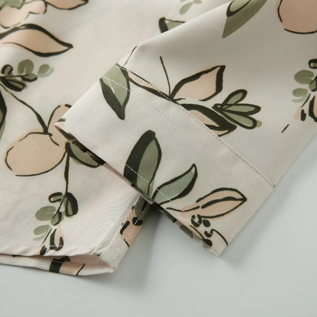 Y6242-3XL グリーン 新品 長袖シャツ アロハ リゾート風 ボタニカル柄 ゆったり 涼感 快適 軽やか 通気 夏秋 メンズ カジュアル トップス