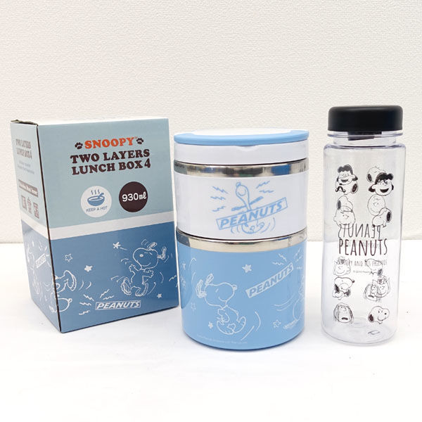 未使用品ですが、商品確認の為、開封しています。箱にダメージがあります。スヌーピー保温ランチボックスです。保温可能なランチボックス&クリアボトルのセットです。 |