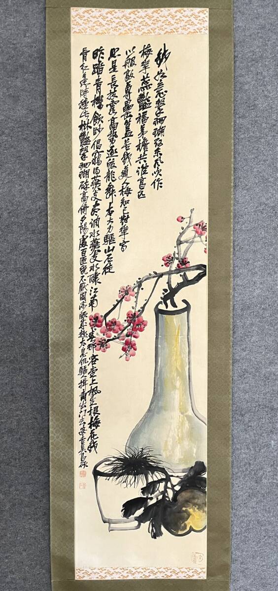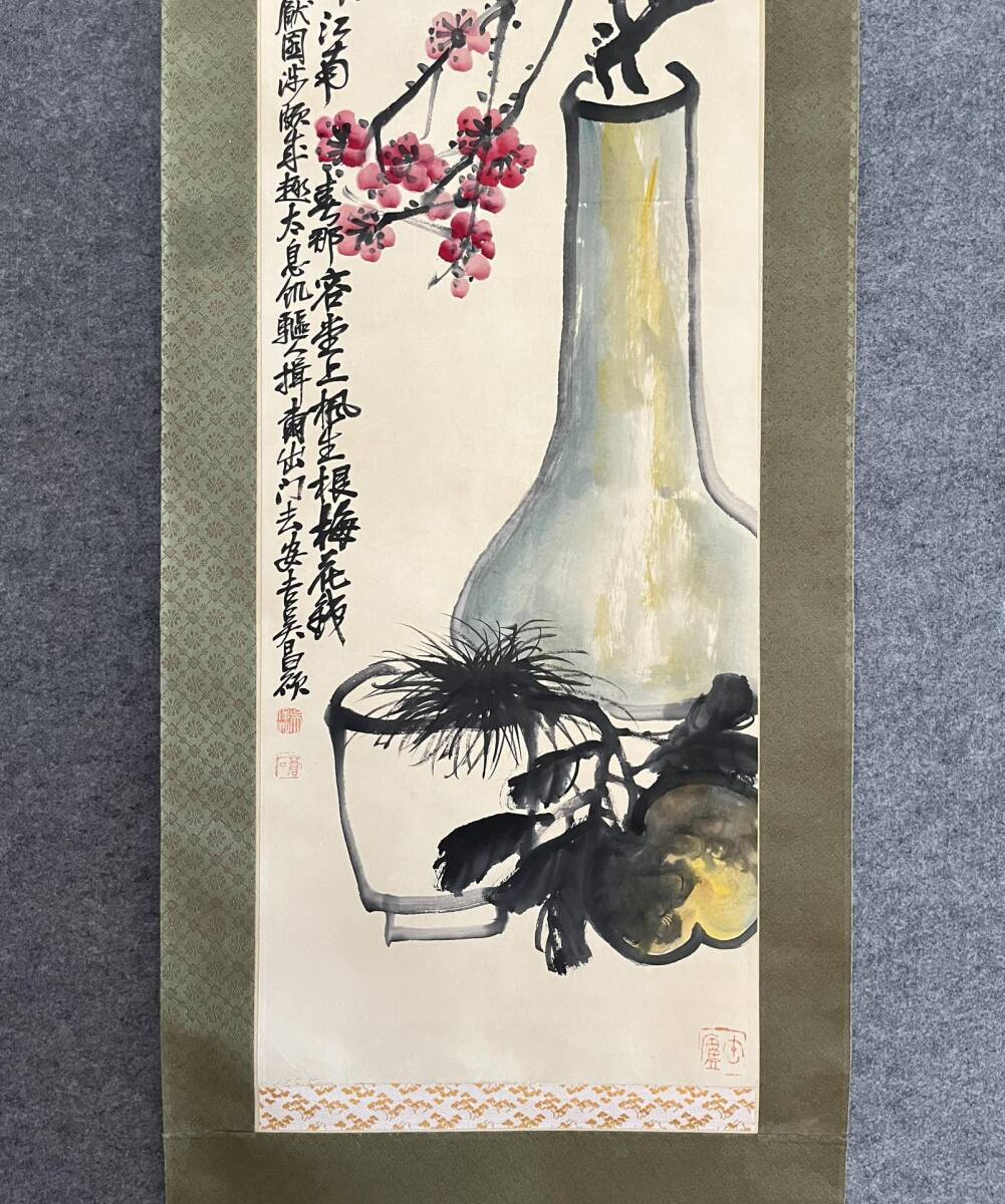 『三希堂』 中国画 古美術 [呉昌碩花卉図] 掛け軸 真筆逸品 肉筆保証 中心尺寸135.5X33.5cm ABC685