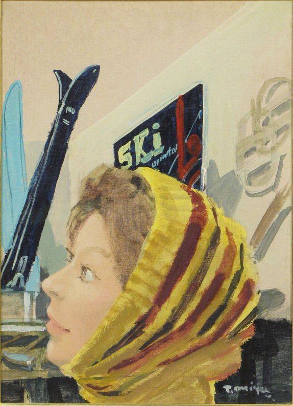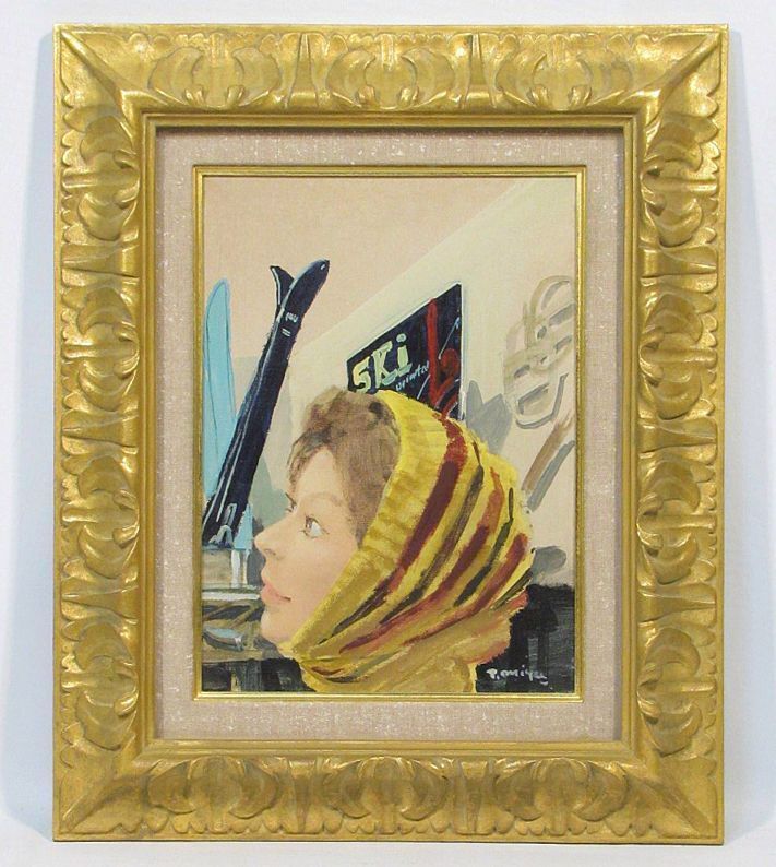 宮永岳彦 「ショールの女性」 額装4号 「真作保証」 スキー場にはピッタリの、