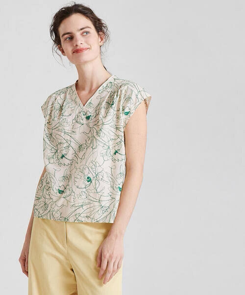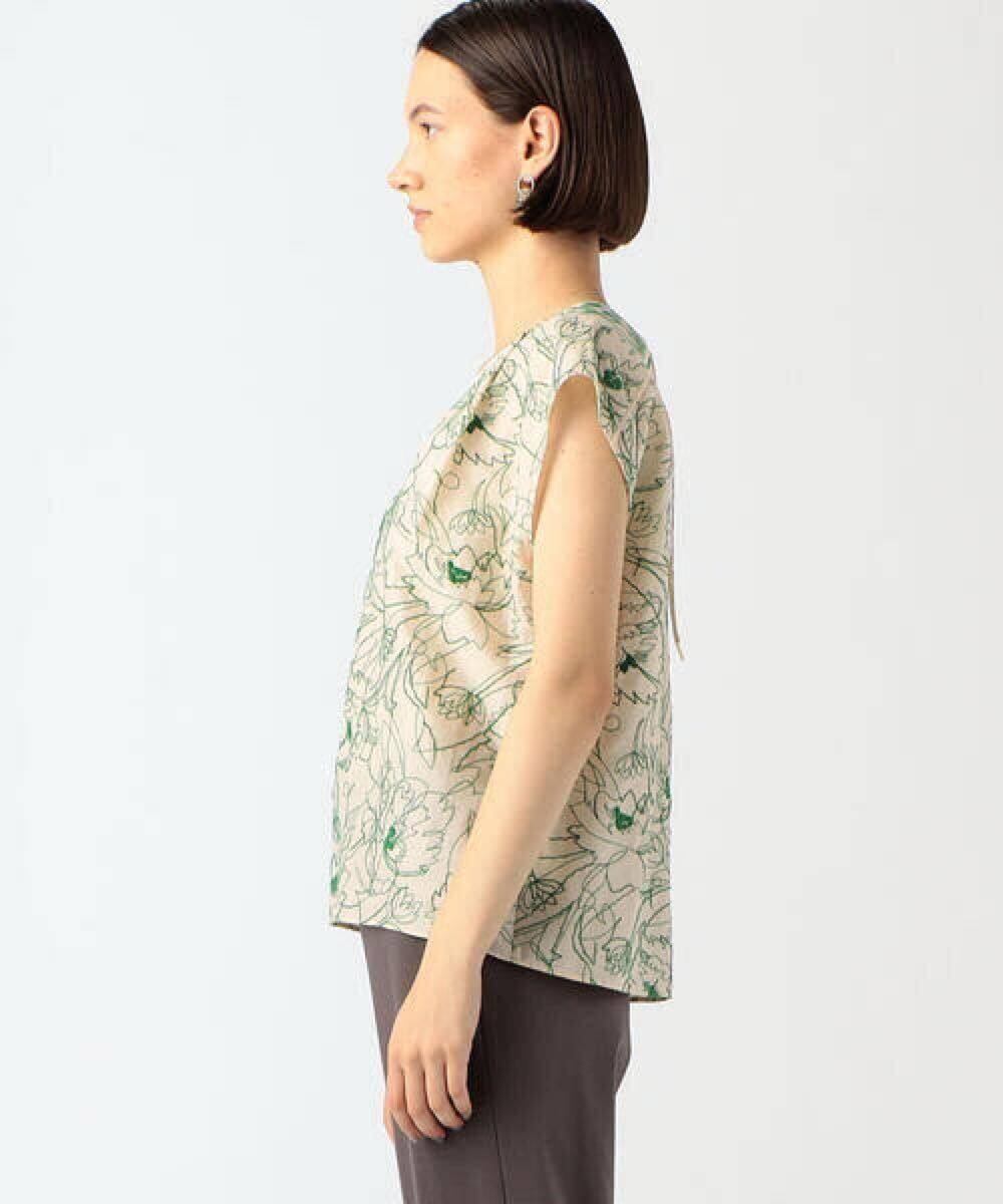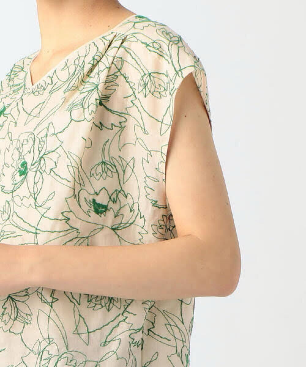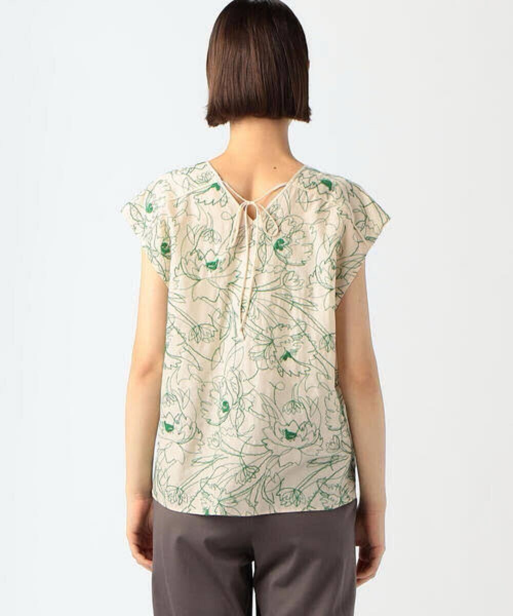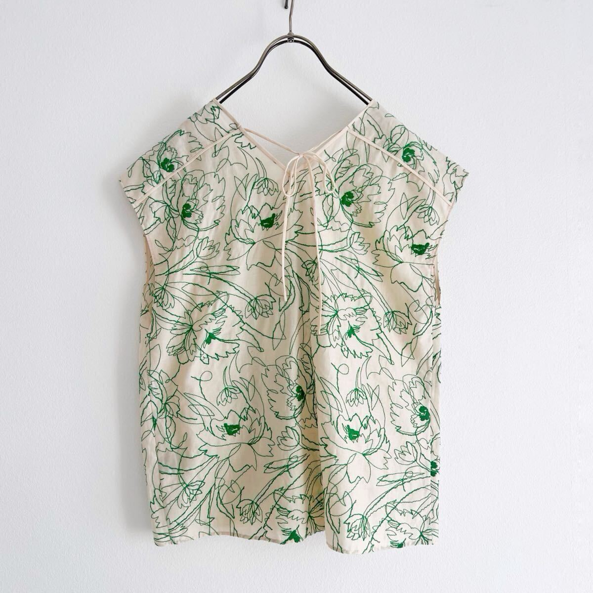 ハンドライティングのようなボタニカル柄の刺繍が印象的なブラウス。 ステッチを一本にしたり重ねたりすることでラインの太さに微妙な変化を付け、奥行きのある表情に仕上げました。 前後共にほど良いあきのVネックで、バックには華奢なリボンを配し後ろ姿にフェミニンなアクセントをプラスしています。 一枚でも着用しやすいキャップスリーブのデザインもポイント。 やや短めの着丈なのでタックイン・アウトどちらもバランス良く合わせられ、さまざまな着こなしをお楽しみいただけます。 着用感はほとんどなく綺麗です。 【ブランド】 TOMORROWLAND 【カラー】 グリーン 【表記サイズ】 36 【平置きサイズ】 着丈 60cm 身幅 48cm 【素材】 コットン100% 他にも多数出品しております こちらをクリック |