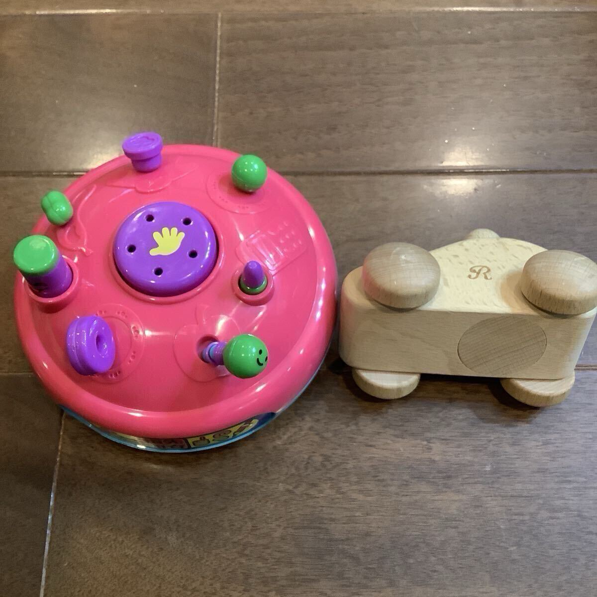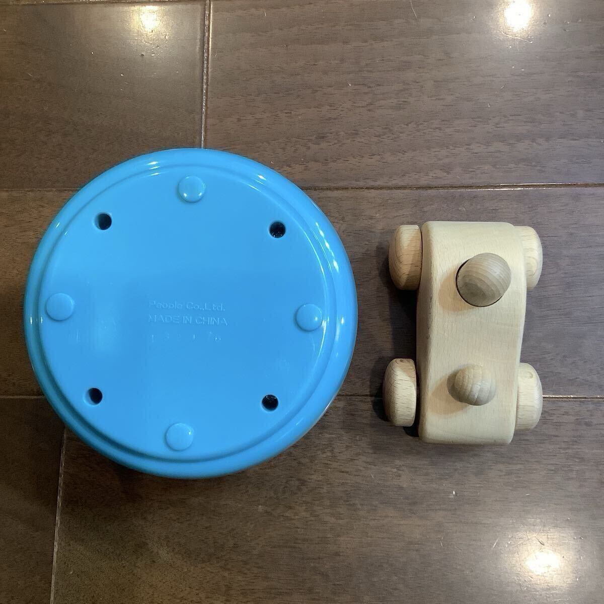 ・木製ミニカー 上部片方のボタンが押すことができ、力を入れて押すと音がします。