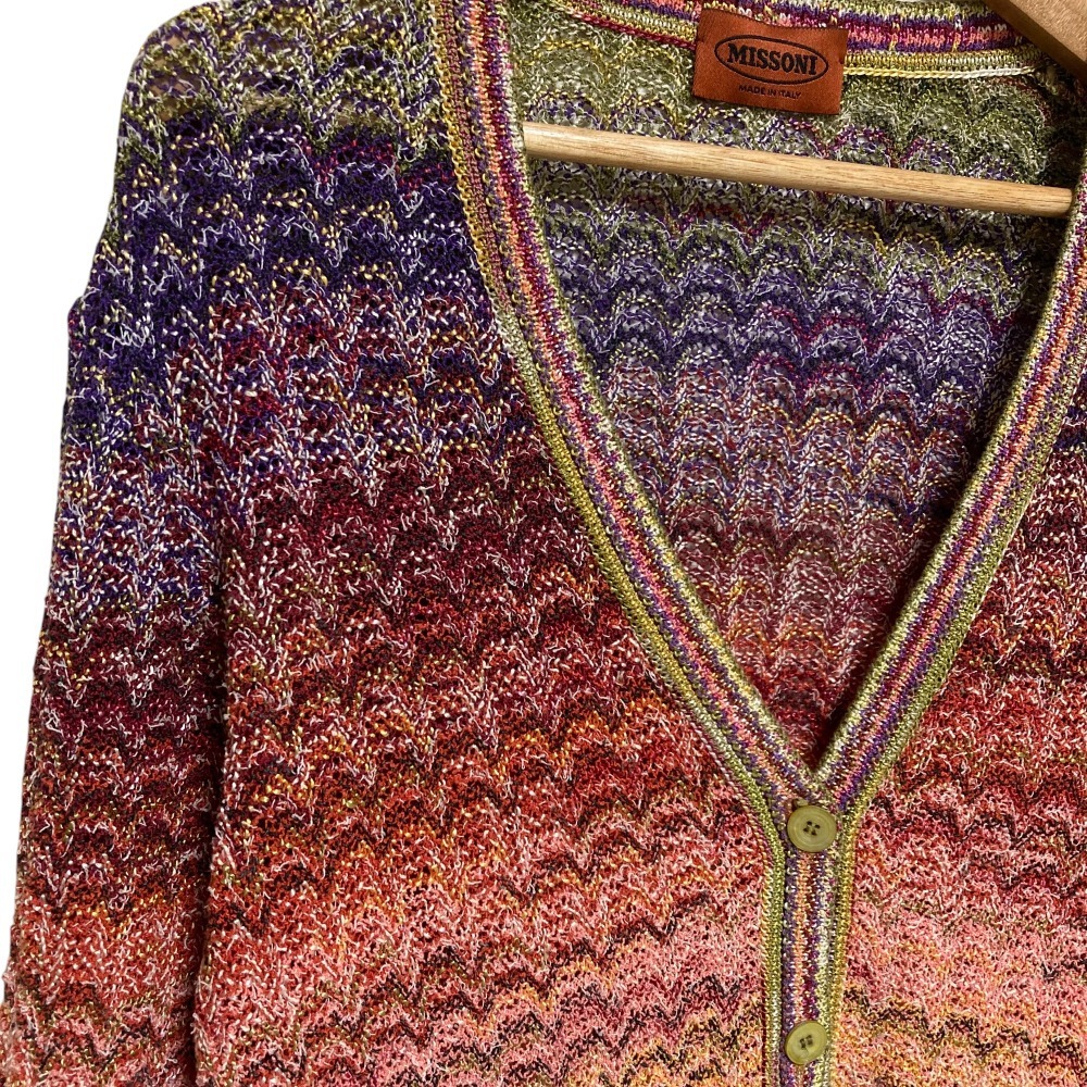美品 MISSONI ミッソーニ シェブロンボーダー グラデーションニット カーディガン サイズ1 マルチカラー